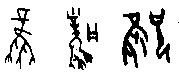 (二)表意 這一類的字主要是表現超乎物象的概念、思想等意義,或是難於用形象表達的事物,包括許慎的指事與會意字。《說文》的說解,“指事者,視而可識,察而見意,上下是也”,是指借用不成字的符號以表達器物所在的某個部位或與之發生關係的有關概念。“會意者,比類合誼,以見指撝,武信是也”,則是合兩個已是字的符號,以表達超乎形體之外的含意。純粹的指事字不多,而且與表意的分別有時很細微,也易因主觀成分的不同而起爭議。為省事起見,不如與表意字同屬一類。表意字有些是借用物體的屬性以表達抽象的概念,故造形是獨體的,如上文所舉的高(字73) ( ![]() )、克(字106) (![]() )、來(字108) (![]() )、享(字109) (![]() )等字。 借以表達概念的物體有時也要作某種輔助性的說明,以致有些組成的部分是不單獨成字的。構件之間常有互動的關係,不只是會合幾個構件以引導出一個意義而已,如雙手常是表示習慣性的持拿方式與所持的部位,故於此採用表意 (或象意)而不用會意之詞。表意字依其結構大致可分幾類:A.全體是符號,因它是普遍性的概念,沒有特定的對象及形制,如: 上(字51),以一小短畫在一長橫畫之上,表達一物在某物之上的形勢。 這種關係不限定於某些器物, 故不以具體的東西去表達 ( )。下(字52),以一小短畫在一長橫畫之下,表達在某物之下的形勢( ) 。小(字113)【 , 物之微也。 从八, 丨 見而八分之。 凡小之屬皆从小】、少(字114)【 , 不多也。 从小丿聲】, 以三或四小點表示其物體積之小與少,也都不表達具體的東西。一般來說,重複的形象絕大多數是表達超乎形體之外的觀念。