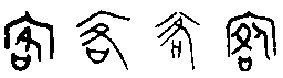 瓜(字93) 【 , 蓏也。 象形。 凡瓜之屬皆从瓜】, 瓜之外形和許多物體相近,加上藤蔓才足以確定為瓜類植物。須(字94)【 , 頤下毛也。 从頁彡。 凡須之屬皆从須】, 是鬚的字源,鬚為臉上之毛,若不加上人的顏臉,也易與其他東西混淆。後來附加的部分類化而為頁。帶(字95)【 ,紳也。 男子鞶帶, 婦人帶絲。 象繫佩之形。 佩必有巾,从重巾】,帶為束衣之物,把束帶後所造成的縐紋也一併描繪,才容易明白其指稱。(b)附加的符號是有具體指稱的字,如: 酒(字8),酒是種穀物釀造的液態飲料,若只畫小點酒滴,就要與許多事物混淆,加上酒尊的酉,指稱就很清楚。酉本身是個酒尊的象形字,有一定的寫法 ( ![]() ![]() )。牢(字76),牢是為祭祀目的而挑選的牛或羊,有特別的飼養場所,如只畫一牢籠,恐形象不明顯,故加一牛或一羊於其中 ( ![]() ![]() ![]() )。