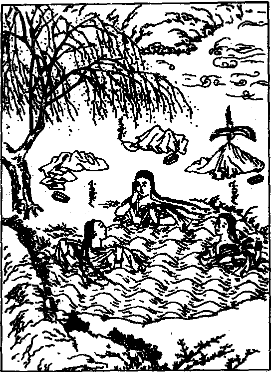 满族民间故事。流传在辽宁省岫岩县一带。故事写货郎乌萨尔卖完货回家,在大柳树下捡到了一个无依无靠的老人。他将老人背回家去,像对父亲一样照顾了三年。老人见乌萨尔心地善良,告诉他今天是七月初七,三年前你救我的柳树下有个荷花泡,天上有三仙女来洗澡,你看中了那个就把她的衣服拿走。又从头上拔下金簪递给乌萨尔,说这是玛法的意思。乌萨尔按老人所说娶了三仙女,并生下一子。三年后小两口闹口角,三仙女带着儿子回天宫去了。乌萨尔没有了妻儿,来到柳树下,又遇到了那个老人,给了他一棵葫芦籽,葫芦籽下土后很快长到了天上,乌萨尔攀援而上,与三仙女团圆了。见《满族三老人故事集》。