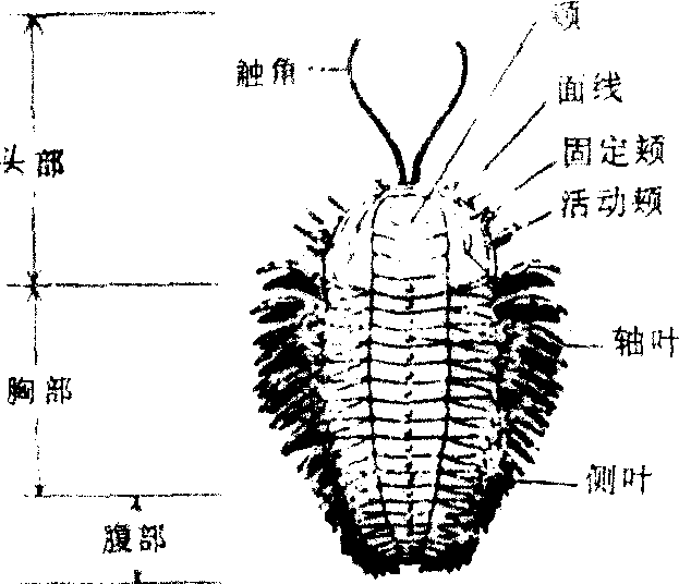 | 释义 | 三叶虫节肢动物门动物。寒武纪动物群中最突出的是三叶虫,约占化石保存总数的60%。早寒武纪后期(5.13亿年前),迅速发展,满布于世界各地海洋中,所以有人把寒武纪称之为“三叶虫时代”。中国是产三叶虫化石最多的国家之一。自寒武纪到二叠纪(2.5亿年前),都有发现。计有376属,1233个种,其中以寒武纪为最多。由于演化迅速,在不同时期出现不同的种,故成为对古生代地层特别是对寒武纪各期地层进行划分与对比的标准化石。最早出现在澄江动物群(5.3亿年前),到晚寒武世(5亿年前)时,三叶虫趋于全盛时代。从奥陶纪(4.9亿年前)开始衰落,志留纪(4.38亿年前)时为数大减,泥盆纪时更少,石炭、二叠纪时,仅残留几个属类了,至古生代末(2.5亿年前)完全绝灭。虫体的外壳分为一个中轴和两个侧叶,由前至后又横分为头、胸、尾3部。海生。迄今为止全世界已发现节肢化石的三叶虫只有19个种。三叶虫成虫一般长3~10cm,宽1~3cm。小型的长度在6mm以下,已知最长的达70cm。三叶虫头盖的轴部隆起部分为头鞍与颈环。头鞍是区别属群的主要特征之一。头鞍上常具头鞍沟,头鞍沟有5对至1对或无,眼一般有1对,但有的无眼。三叶虫的胸部由胸节组成,成虫胸节数目最少为2节,最多40节以上。三叶虫的尾部由若干体节互相融合而成,节数自1节至30节以上不等。 三叶虫Trilobita节肢动物门的一纲。背壳纵分为中轴和两侧的肋叶三部分,横分为头、胸、尾三部分。口头部主要由头鞍和颊部组成,胸部分节,尾部有尾刺,以寒武纪至奥陶纪最繁盛,古生代末灭绝。在陕西省境内已发现有49属65种,主要分布于陕南大巴山、洛南县、陇县及渭北等地的寒武、奥陶纪地层中,其中古莱得利基虫(Eoredlichia)、瘤肋虫(Hammatocnemis)、小达尔曼虫 (Dalmanitina)及浆肋虫 (Remopleurides)等是划分地层时代的重要分子。 三叶虫 三叶虫sanyechongTrilobita节肢动物门,三叶虫纲。早已绝灭,一般的化石是矿化坚硬的背壳和腹缘。海生,多营底栖生活,少数潜伏泥砂中或营漂游生活。背壳纵分为1个轴叶和2个侧叶3部分,横分为前、中、后3部分。前部为头,主要由头盖和颊部组成,头盖中间有突起的头鞍;中部为胸,分节,能弯曲,最少者2节,最多者40余节;后部为腹,中间为轴叶,两侧为侧叶,分节或不分节。腹面有口、触角、附肢和肛门。一般体长数厘米,最大型的长可达70厘米,小型的仅长数毫米。寒武纪初期已出现,奥陶纪时繁盛,志留纪以后逐渐衰亡,二叠纪末完全绝灭。