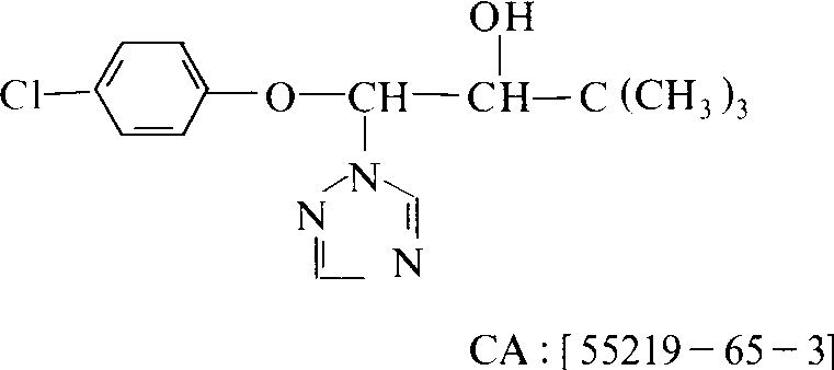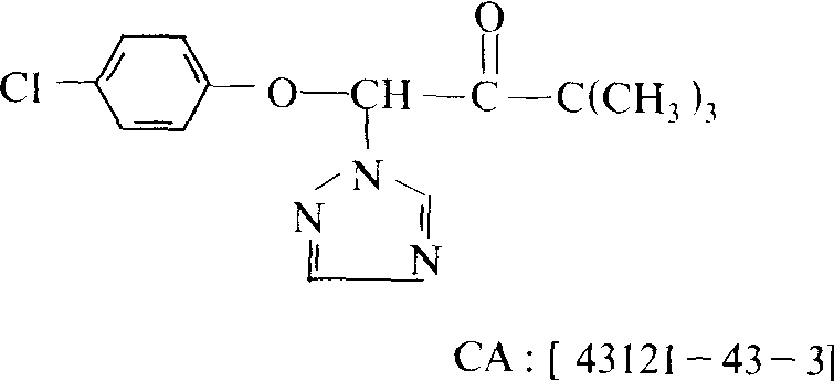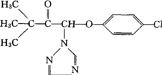 性能 纯品为无色结晶,熔点82.3℃,20℃时蒸气压小于99.9918×10-10帕。20℃时在各种溶剂中的溶解度为: 水0.007%、环己酮60~ 120%、异丙醇20~40%、二氯甲烷>120%、甲苯40~60%。在酸性或碱性介质中都比较稳定,在0.05摩尔/升硫酸或0.1摩尔/升氢氧化钠中,于20℃保存24小时不分解。对温血动物低毒,大鼠急性口服LD50为1000~1500毫克/千克,雄、雌小鼠分别为989毫克/千克和1071毫克/千克。雄性大鼠急性经皮LD50>1000毫克/千克。对雄、雌大鼠和狗喂饲两年的无作用剂量分别为500毫克/千克、50毫克/千克和330毫克/千克。无胚胎毒性、不致畸、未发现致突变作用。对虹鳟鱼和鲤鱼的LC50分别为14毫克/升(96小时)和7.6毫克/升(48小时)。对鹌鹑LD50为1750~2500毫克/千克。对蜜蜂和天敌无毒。具有高效、广谱、低残留、残效期长,内吸性强的特点。易于被植物体吸收并在在体内传异。兼有保护、治疗、铲除和熏蒸等作用。其作用机制主要是抑制麦角甾醇的生物合成。对某些真菌的活性主要表现在寄主植物体内(活体),离体效果很差。应用 广泛用于防治禾谷类作物、蔬菜和果树的白粉病、锈病和某些黑穗病。也用于大麦云纹病、甘蔗凤梨病、橡胶白粉病的防治。喷洒防治麦类、瓜类、苹果、草莓、葡萄白粉病的有效施用浓度为25~125毫克/升,喷洒防治麦类秆锈病、小麦叶锈病和条锈病的用药量为有效成分125~250克/公顷。喷洒1~2次。拌种防治小麦根腐病、小麦和大麦的散黑穗病、光腥黑穗病、网腥黑穗病、白秆病及苗期发生的白粉病、锈病、云纹病、叶枯病、全蚀病,每千克种子用药量为有效成分0.3克。拌种防治高粱丝黑穗病、散黑穗病和坚黑穗病,每千克种子的有效剂量为有效成分0.4~ 0.6克。防治玉米丝黑穗的剂量为有效成分0.8克。药剂在有效剂量下,对作物安全。加工制剂主要有25%可湿性粉剂、20%乳油和15%烟雾剂,后者主要用于橡胶白粉病的防治。可与多种杀菌剂、杀虫剂和除草剂混用。类似品种 继三唑酮之后,西德拜耳公司又开发了三唑醇(48小时)。对鹌鹑LD50为1750~2500毫克/千克。对蜜蜂和天敌无毒。具有高效、广谱、低残留、残效期长,内吸性强的特点。易于被植物体吸收并在在体内传异。兼有保护、治疗、铲除和熏蒸等作用。其作用机制主要是抑制麦角甾醇的生物合成。对某些真菌的活性主要表现在寄主植物体内(活体),离体效果很差。 应用 广泛用于防治禾谷类作物、蔬菜和果树的白粉病、锈病和某些黑穗病。也用于大麦云纹病、甘蔗凤梨病、橡胶白粉病的防治。喷洒防治麦类、瓜类、苹果、草莓、葡萄白粉病的有效施用浓度为25~125毫克/升,喷洒防治麦类秆锈病、小麦叶锈病和条锈病的用药量为有效成分125~250克/公顷。喷洒1~2次。拌种防治小麦根腐病、小麦和大麦的散黑穗病、光腥黑穗病、网腥黑穗病、白秆病及苗期发生的白粉病、锈病、云纹病、叶枯病、全蚀病,每千克种子用药量为有效成分0.3克。拌种防治高粱丝黑穗病、散黑穗病和坚黑穗病,每千克种子的有效剂量为有效成分0.4~ 0.6克。防治玉米丝黑穗的剂量为有效成分0.8克。药剂在有效剂量下,对作物安全。加工制剂主要有25%可湿性粉剂、20%乳油和15%烟雾剂,后者主要用于橡胶白粉病的防治。可与多种杀菌剂、杀虫剂和除草剂混用。 类似品种 继三唑酮之后,西德拜耳公司又开发了三唑醇(triadimenol)。它是三唑酮的还原产物,是一种优良的拌种剂。化学结构式: