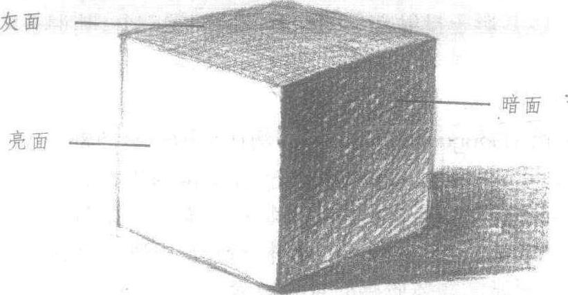 物体所占有空间的长、宽、高三个方向的面,即三度空间。物体的三度空间所形成的三个方向的大面是素描表现空间的基本要素。一般情况下,物体三大面在光线照射下,形成黑、白、灰分明的三个色调。