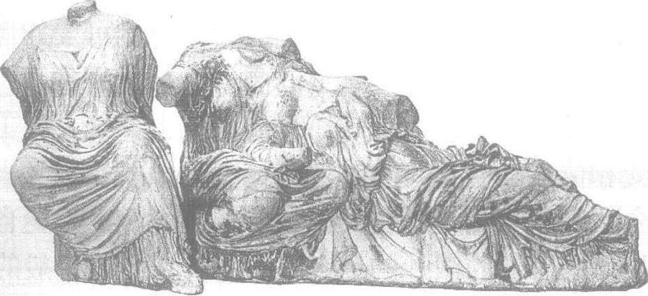 希腊神话中有许多有趣的故事,据说雅典娜是从宙斯头脑里诞生的。掌管生死和命运的三女神(克罗托司生命之线,拉科西斯司生命长短之线,阿特洛波斯司切断生命之线)前往祝贺。雕刻家十分大胆地将三女神处理成年轻美貌的少女,她们身穿丝质长袍,薄薄的有韵律的衣纹显露出少女丰盈的富有弹性的身躯。不因岁月的流逝,也不因折断了臂膀和头颅,她们的青春魅力而有所减损。这就是雕刻家菲狄亚斯和他同代雕刻家们对人类做出的伟大贡献。