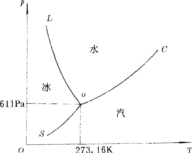 ☚ 相平衡 一级相变 ☛ 三相点见“化学”中的“三相点”。 三相点指单组分物系中三相处于平衡共存时的温度和压力。例如水在273.16K(0.01℃)的温度和压力为4.58毫米汞柱时,水、冰和水蒸气平衡共存,这就是水的三相点。在相图上,三相点是三条线的交点。 |