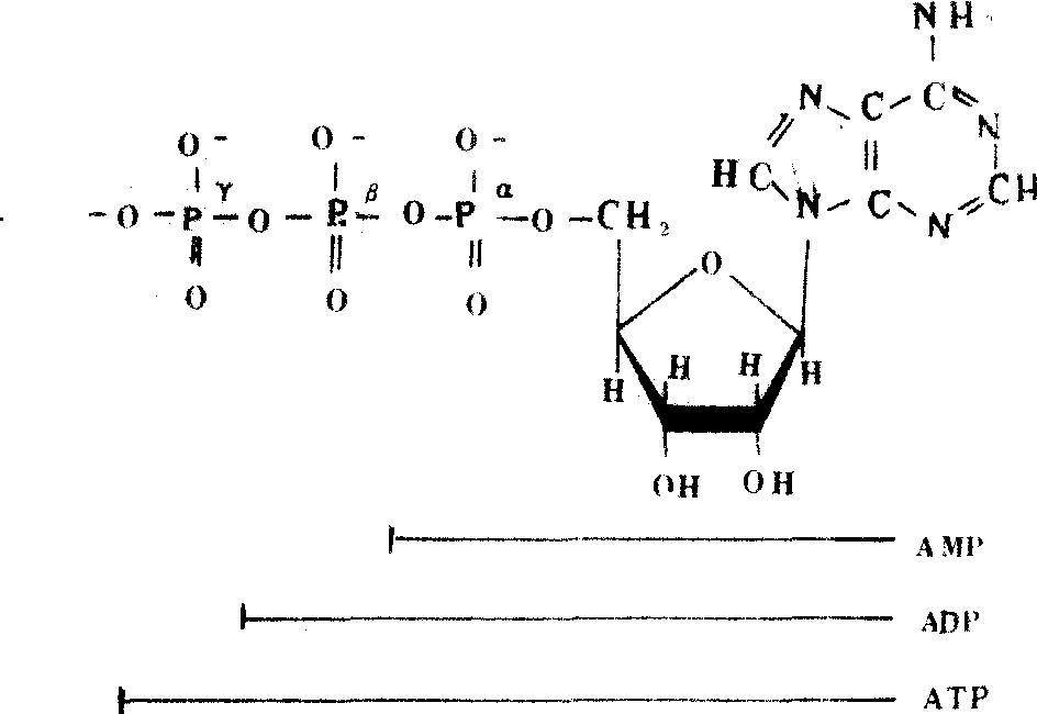 | 释义 | 三磷酸腺苷 三磷酸腺苷ATPsanlinsuan xiangan又称腺苷三磷酸,是腺苷酸(AMP)的磷酸衍生物。腺苷酸的末端磷酸基再连结一个磷酸基为二磷酸腺苷(ADP),ADP再连结一个磷酸基为三磷酸腺苷。ATP是生物体内重要的高能磷酸化合物,每摩尔ATP水解生成ADP和Pi(无机磷酸)时可释放自由能7.3千卡(30.5千焦尔);它是能量代谢的中心物质。所谓自由能是在恒温恒压下可以作功的能。复杂的营养物分子含有较多的自由能。葡萄糖和细胞的其他能源物质在氧化分解时释放自由能,其中大部分以ATP的形式保留,少部分以热能的形式散失。以ATP形式保留的自由能可用于作功,如肌肉收缩(机械功)和生物合成(化学功)。热能虽然可以维持高等动物的体温,但不能作功。因为这种形式的能只有从较热的物体流向较冷的物体时,才可在恒压下作功,这在活细胞中是不可能的。细胞是等温的,即其各部分的温度均相同。以ATP形式保留的化学能,可作4种类型的功。一是能提供生物合成所需的化学功。在此过程中,ATP的末端磷酸基酶促转移到各种结构单元中,使之成为活化的前体物质并准备组装成生物大分子,二是细胞运动和收缩的能源。三是使营养物穿过膜从浓度低的部位移向浓度高的部位。四是在DNA、RNA和蛋白质的合成过程中,保证遗传信息的精确转移。ATP的化学能用于细胞作功的任何时候,都丢失其末端磷酸基,使之变成无机磷酸(Pi),遗留下ADP(有时是AMP)。在与细胞能源物质分解产能过程的偶联中,ADP又和Pi再生成ATP。这样,在细胞的“能循环”中,ATP是联系产能和需能过程的桥梁。