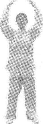 太极拳内功桩法之一。练法如下: 两脚分开站立,约与肩宽; 两臂上举,高过头部,掌心斜向下,掌指向内,虎口撑圆相对,两臂环抱成圆形; 沉肩坠肘,气沉丹田,松腰松胯,目视前方,自然呼吸。如图。