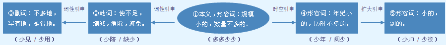 | 释义 | ![]() 数量较小: 以~胜多|别~见多怪|此事看来凶多吉~。 多 duō 增~|积少成~|人~势众|~~益善。 年纪较轻: ~不更事|男女老~|~壮不努力,老大徒伤悲。 老 lǎo 生~病死|长生不~|~少无欺。 数量小(跟“多”相对)。可受程度副词修饰。 a.作谓语,可带补语。 这儿人很~|东西~得可怜。 b.作补语,要用“得”。 他这个人哪,说得多,做得~。 ❶缺少,不够原有或应有的数目(跟“多”相对)。作带宾谓语。 账算错了,~了两块钱|缺医~药|~了一个打字员|车票全买了,一张也不~。 ❷丢,遗失。作带宾谓语。 柜子里~了100元钱|屋里没有~东西|~了一只鸡。 暂时;稍微。作状语。 你~候片刻,我马上就来。 【反】 多 【注意】 又读shào,如:少年、男女老少。 字源解说 “小”、“少”同源,后分化。少,甲骨文 附 文言版《説文解字》:少,不多也。从小丿聲。 附 白话版《说文解字》:少,不多。字形采用“小”作边旁,“丿”是声旁。 引申线索 ![]() 【字族索引】 小 少 【同音字】 shǎo shào |