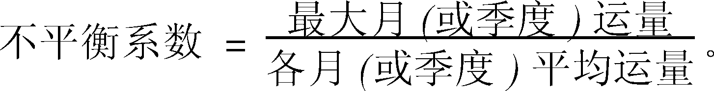 | 释义 | 不平衡系数 不平衡系数unbalanced coefficient又称“波动系数”。反映运输在时间上不均衡状况的指标。年度内最大的月(或季度)运量与全年各月(或季度)平均运量的比值。计算公式为: