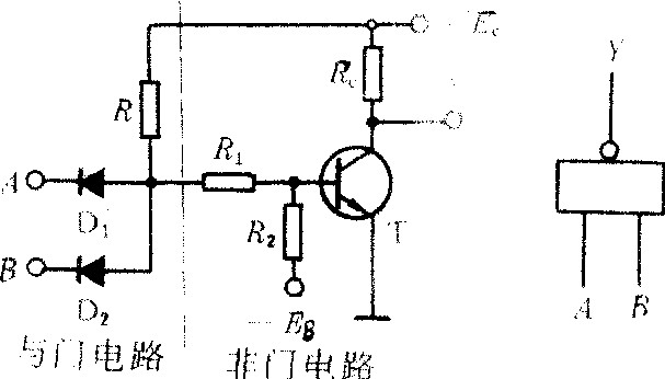 把一级与门电路和一级非门电路连接起来所构成的电路。简称与非门。是具有多端输入和单端输出的门电路。下图示出其电路及其逻辑符号。当有一个或一个以上的输入端为低电平0时,输出为高电平1;仅当输入全为高电平1时,输出才是低电平0。用逻辑函数的数学表达式表示则为:Y=A·B。下表列出了与非门电路的真值。