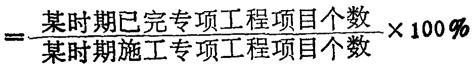 指施工企业在一定时期内已完专项工程项目个数与施工专项工程项目个数的比率。它是反映专项工程项目完工程度的指标。计算公式为: