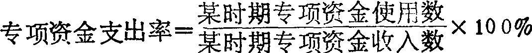 专项资金支出率指施工企业一定时期内专项资金使用数与专项资金收入数的比率。它是衡量各专项资金是否贯彻先筹后用、量入为出原则,从而其收入来源与使用数是否适应的一项捐标。除统一计算专项资金综合支出率外,还可以具体分类或分项计算专项资金支出率。例如,专用资金综合支出率,特种资金综合支出率,专用拨款综合支出率,专用借款综合支出率,以及更新改造资金支出率,大修理资金支出率,临时设施包干资金支出率等。其一般计算公式为: