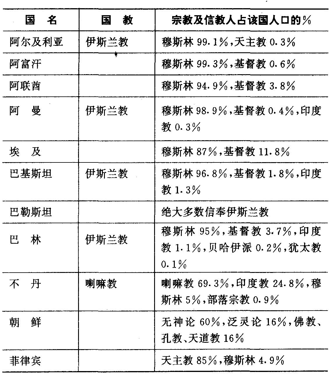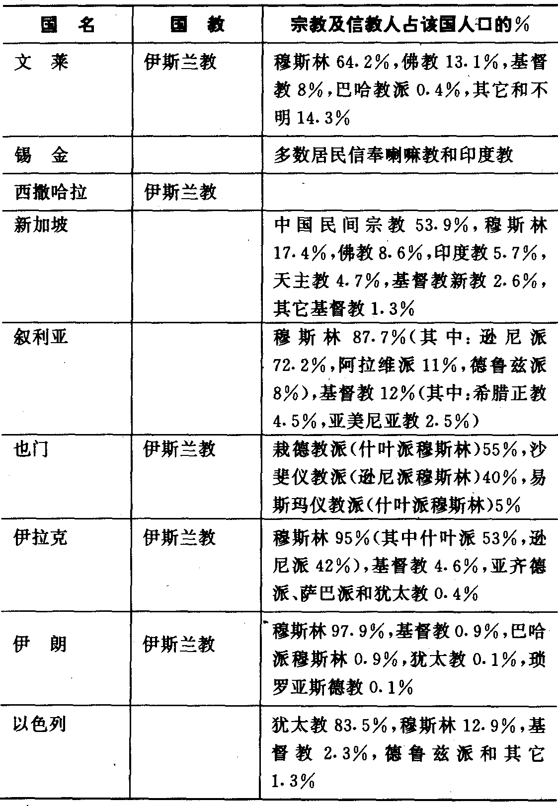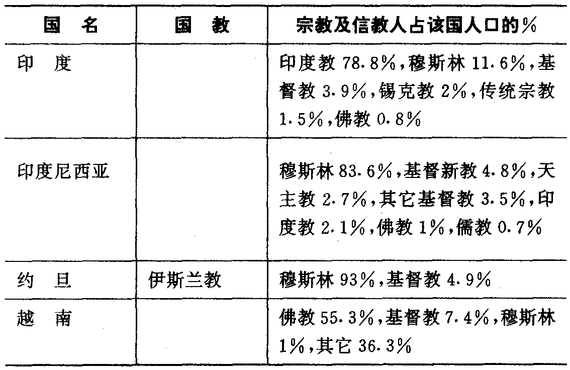 东方各国宗教简表