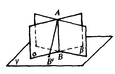 证 过直线AB上任一点A,作AB′⊥γ,垂足为B′.因为A∈α,α⊥γ,根据上面的性质可知AB′⊂α.同理可证AB′⊂β.所以AB′一定与AB重合,即AB⊥γ.