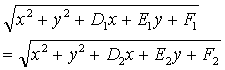 指到不同心的两圆x2+y2+Dix+Eiy+Fi=0 (i=1,2)的切线长相等的点的轨迹.
