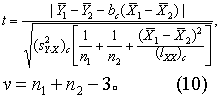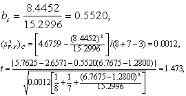 (4) 求统计量t值: