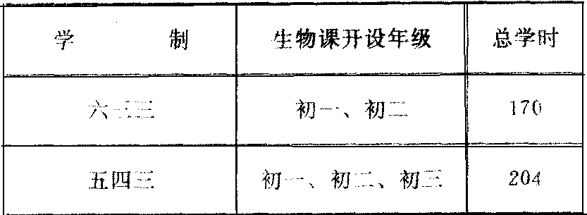 中学生物教学是随着社会政治、经济及生物科学的发展而发展的。在我国,生物学作为中学教学计划中的一个学科,已有100多年的历史。大体上可分为中华人民共和国建立前和建立后两大阶段。建立前(1840~1949)又可分为(1)1840~1900:鸦片战争后,我国逐渐开展了系统的科学教育,生物学课程主要在教会学校开设,教学基本上由外国传教士进行,教学内容带有浓厚的宗教色彩。(2) 1901~1912:1902年和1903年(清光绪二十八年和二十九年),清政府先后颁布了“壬寅学制”和“癸卯学制”,制定了《奏定中学堂章程》,规定中学学制5年,有4年开设博物课,其中一、二年级开植物和动物,三、四年级开生理、卫生和矿物,每周均为2课时。教学内容以形态、构造、分类为主,也强调生理功能及生物之间的相互关系,并且注重生物知识的实际应用。在教学方法上要求重视实物标本的观察,规定了生物教学必须具备实验室和标本室。(3) 1912~1922:1912年(中华民国元年)12月,南京临时政府教育部公布了《中学校令实施规则》,规定中学学制4年,博物课开设3年,一、二年级开植物、动物,每周3课时;三年级开生理、卫生和矿物,每周2课时。对教学目的要求规定为:“博物要旨在习得天然物之知识,领悟其中相互关系及对人生之关系。”1913年公布的课程标准中规定:植物、动物的内容包括形态、分类、解剖、生理、生态、分布、应用等之大要。生理及卫生包括人身之构造、个人卫生和公众卫生。(4) 1923~1949:1923年,中学学制改为6年,实行学分制,规定每半年上课1小时为1学分。初中设自然科(15学分)和生理卫生(4学分),不单设动、植物学,高中开设生物学(8学分)。1932年后,初中生物又分为动物、植物和卫生,分别为4、4、6学分,高中生物10学分,在高中一年级开设。1923年后,我国老一辈生物学家和生物教师,根据当时颁布的《高中生物学课程标准》,相继编写出版了多种生物学教科书,如吴元涤编著的《生物学》(1932年);陈桢编著的《复兴高级中学生物学》(1933年);郑勉编著的《高中生物学》(1935年);贾祖璋编著的《开明新编高中生物学》(1948年)等。其中以陈桢的高中生物学教科书影响最大,从1933年初版到中华人民共和国建立后的1951年7月,共发行181版次。上述教科书各具特色,一般都注意反映当时生物科学的新成就,介绍生物学家、生物学史以及不同的学术观点等,也重视基本实验方法的介绍,深入浅出,广泛联系实际。一些有名望的中学也陆续在高中开设生物实验,并有编印成册的实验指导。总的看来,中华人民共和国建立前的中学生物教学,主要效法西方和日本。中华人民共和国建立后(1949~ )又分(1) 1949~1952:先解放的东北地区,基本上学习苏联。当时东北人民政府教育部组织翻译了苏联中学的植物学、动物学、人体解剖生理学、达尔文主义基础等教科书,供各校采用。其他地区主要是修改解放前的一些教材,增加了米丘林学说的内容。1951年,教育部颁布了《中学暂行教学计划(草案)》,规定在中学开设4门生物课(见下表),从此,全国中学生物教学才由分散趋于集中统一。