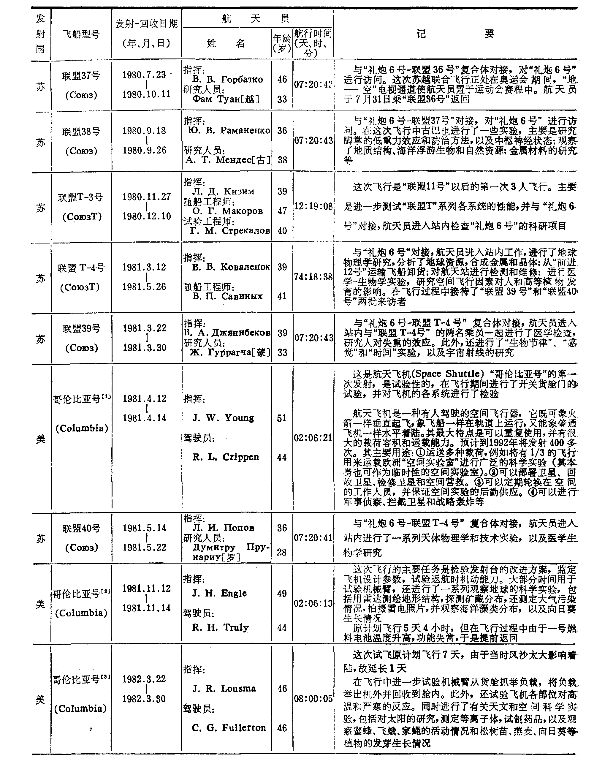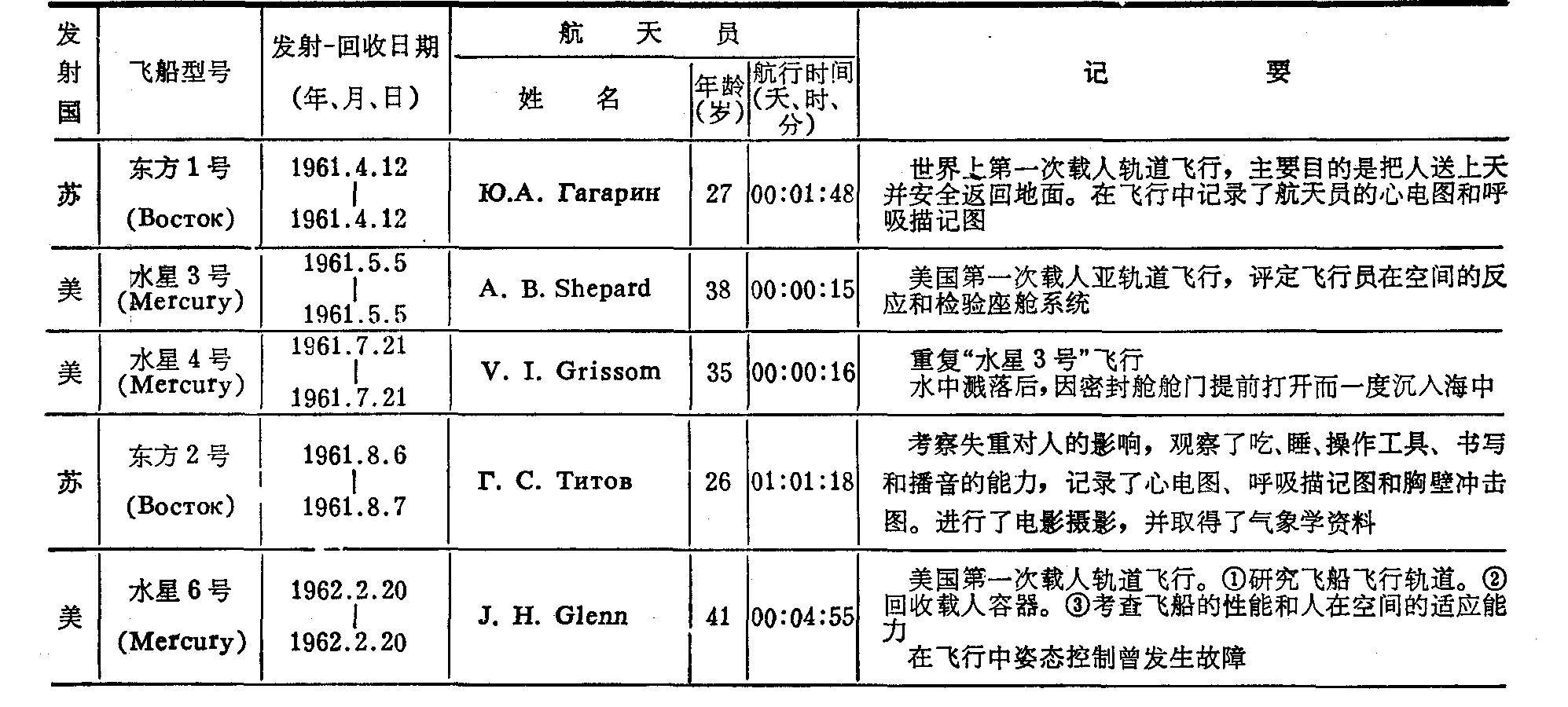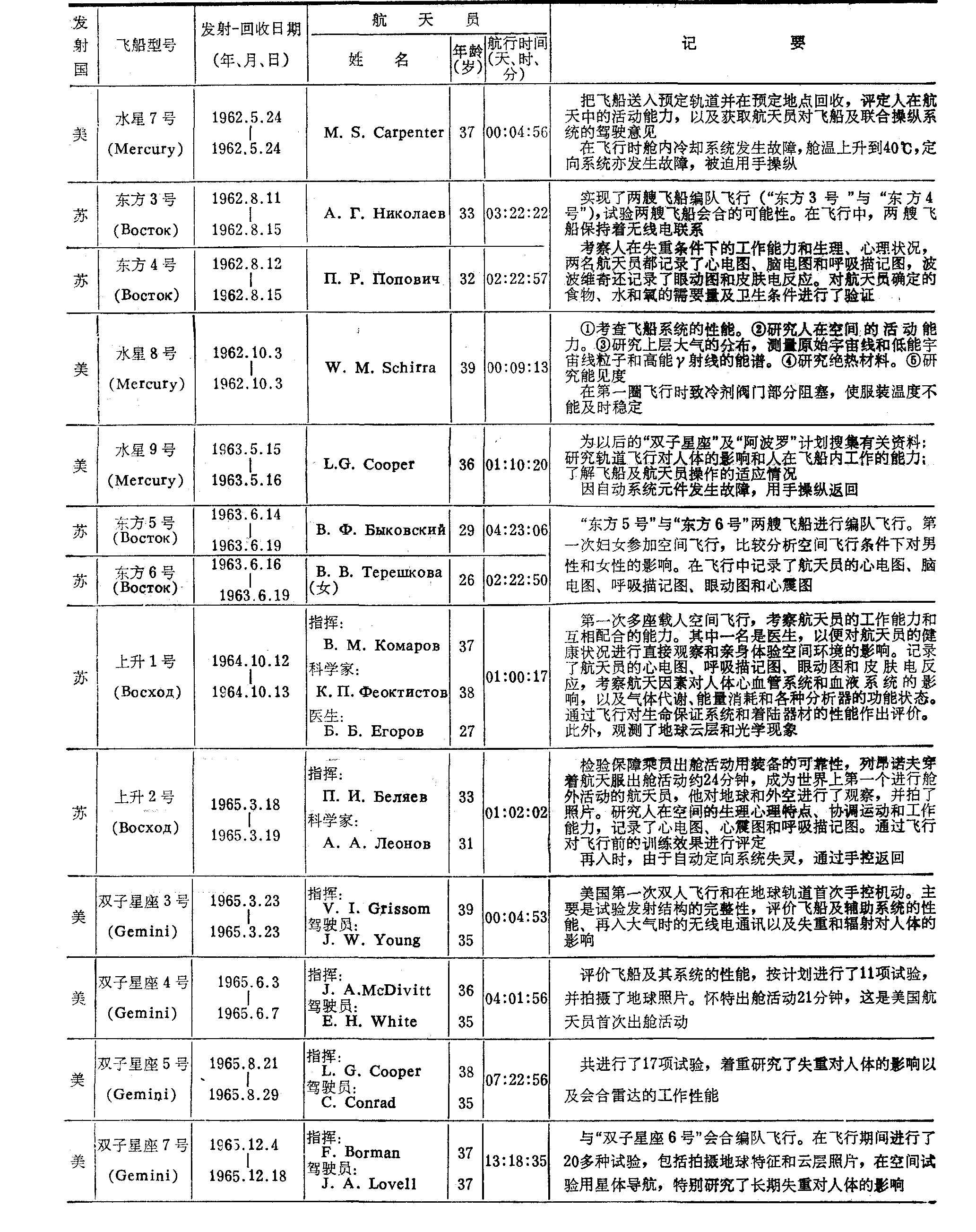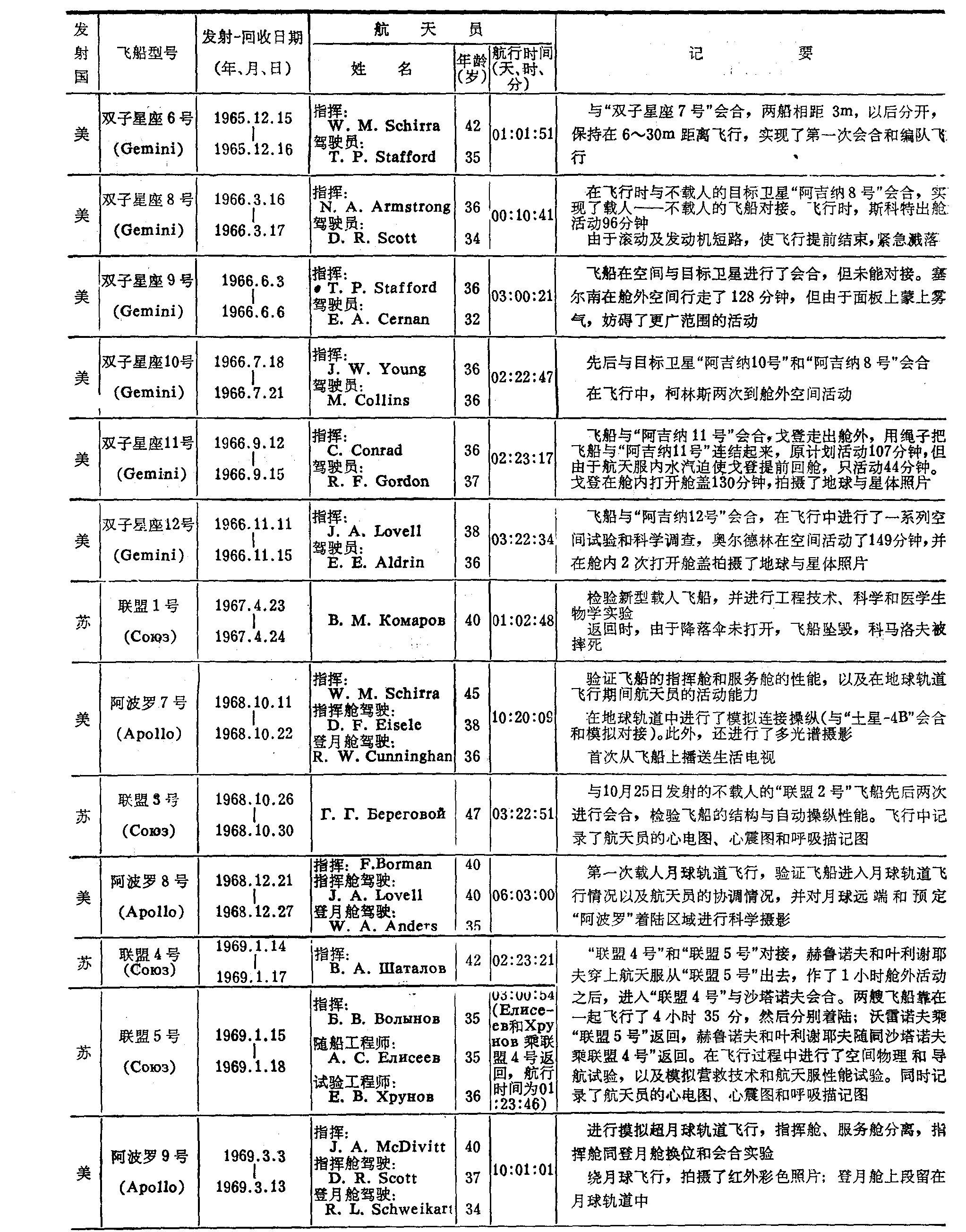 注: 美国飞船型号[]内的数字表示航天飞机第×次飞行