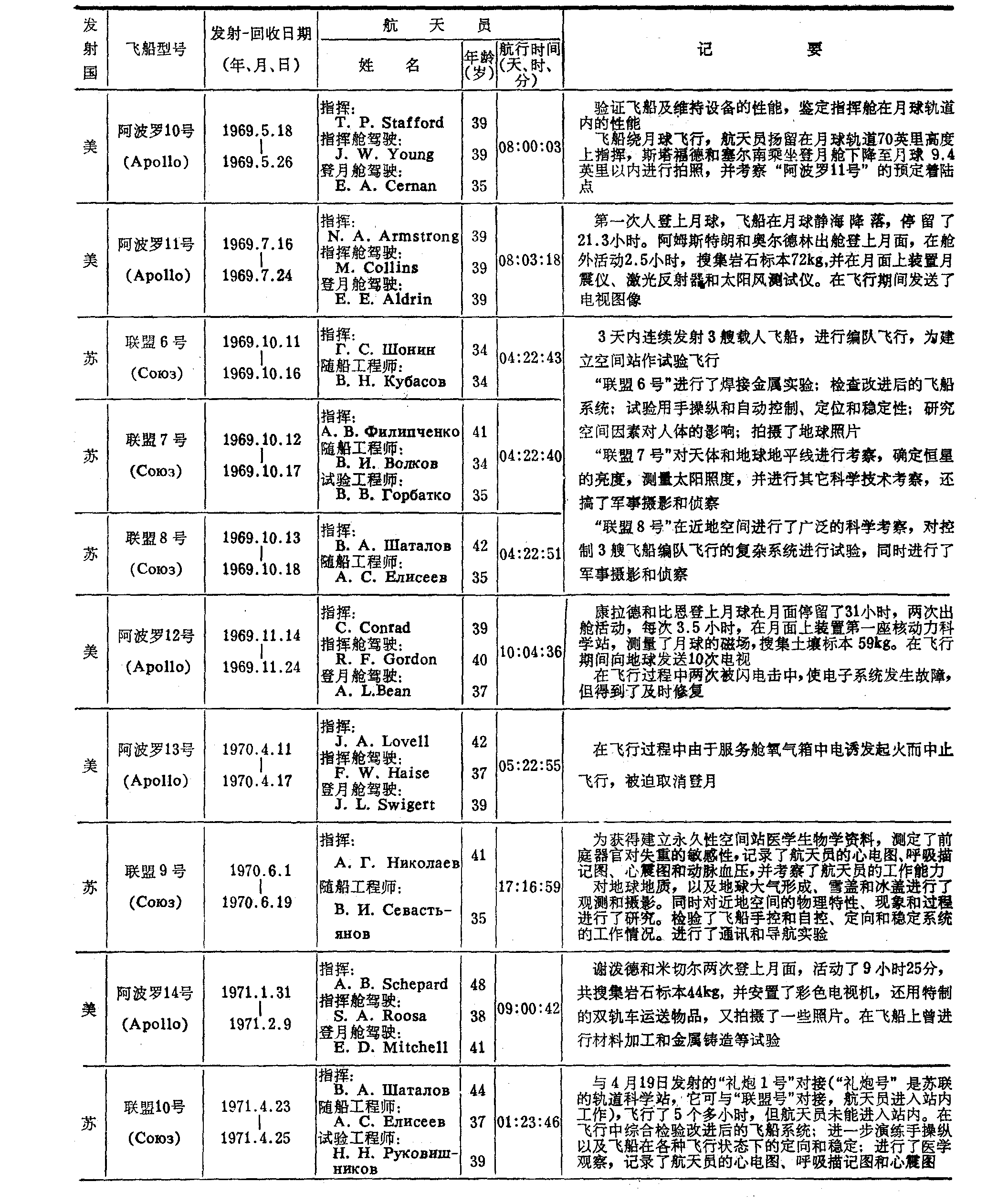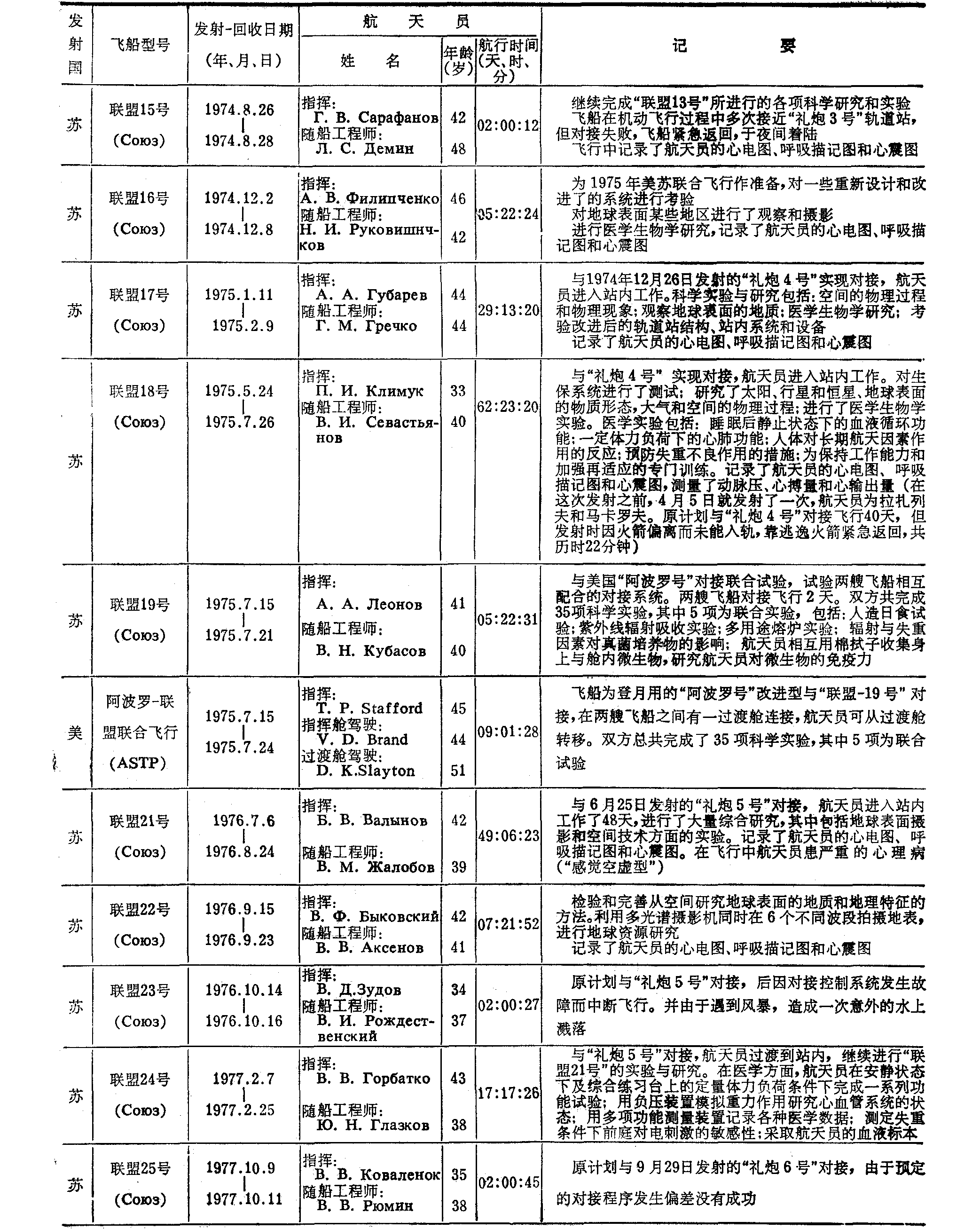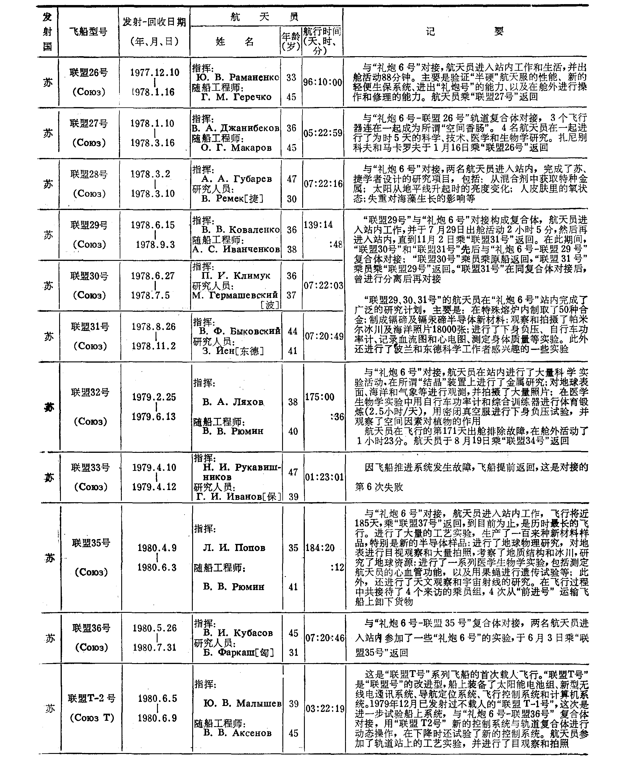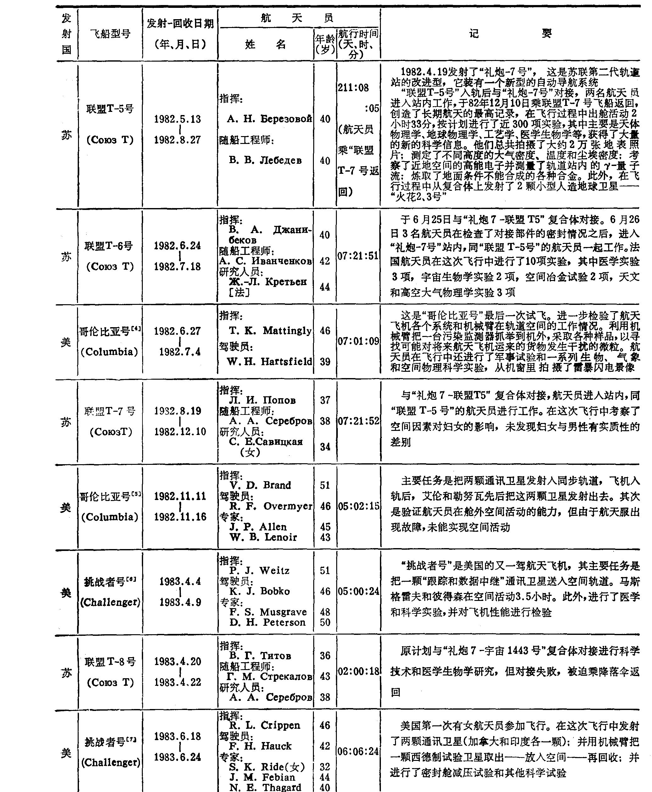 注: 美国飞船型号[]内的数字表示航天飞机第×次飞行
