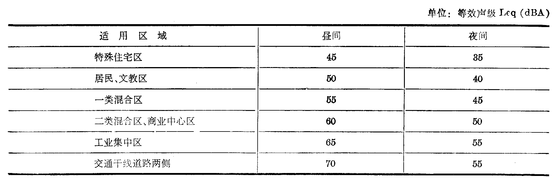中国医学百科全书︱附录 六、中华人民共和国国家标准 城市区域环境噪声标准 附录 六、中华人民共和国国家标准 城市区域环境噪声标准 UDC 534.836 GB 3096—82 Standard of environmental noise of urban area 本标准为贯彻《中华人民共和国环境保护法(试行)》,控制城市区域环境噪声危害而制订。 本标准适用于城市区域环境。 1 标准值及适用范围 1.1 城市各类区域环境噪声标准值列于下表。