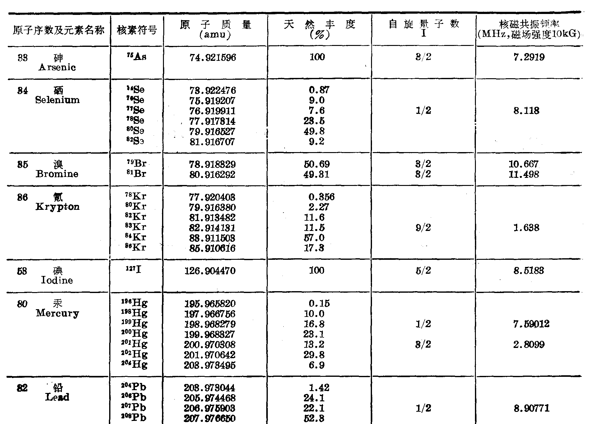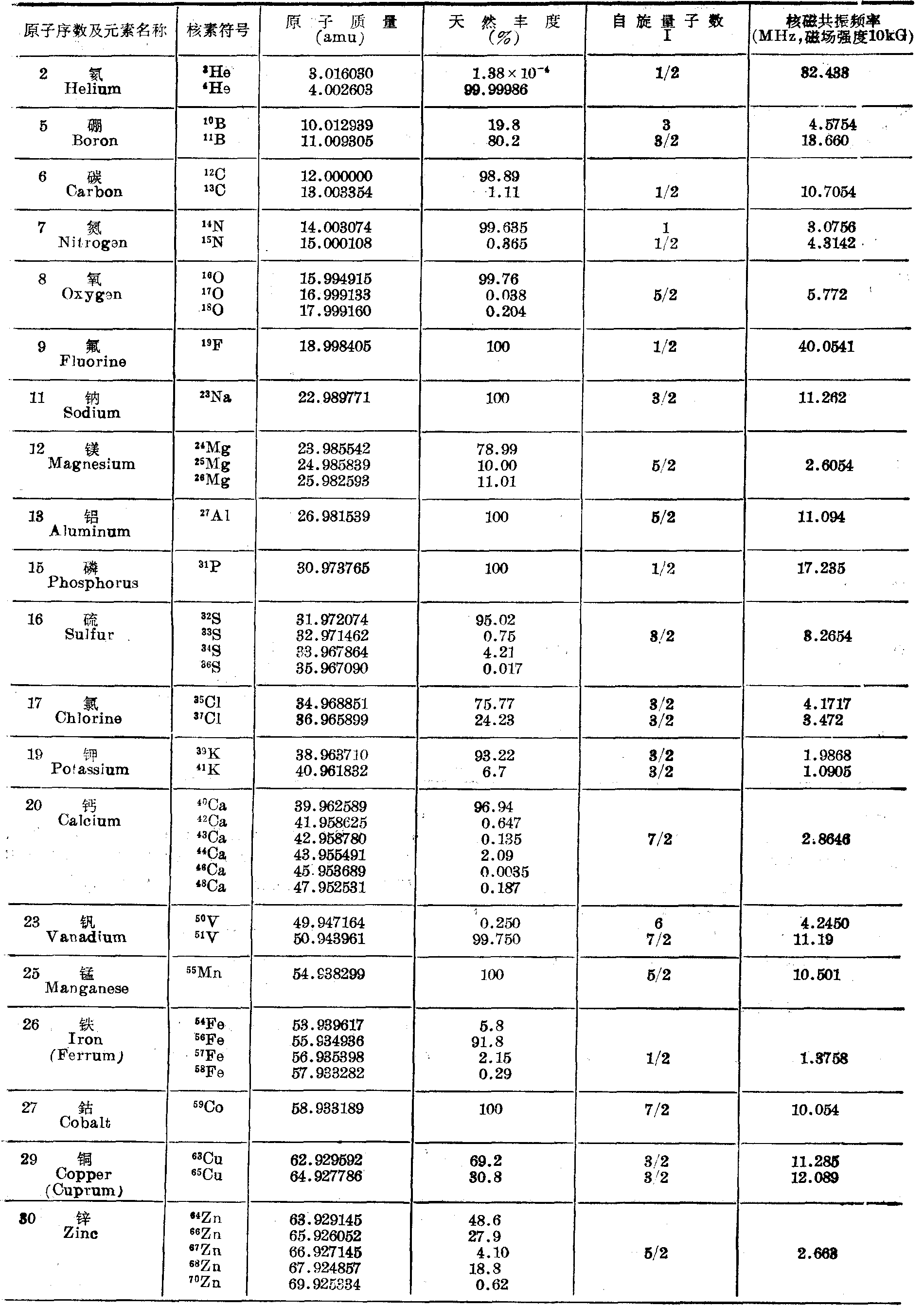 附录六 常用稳定核素表