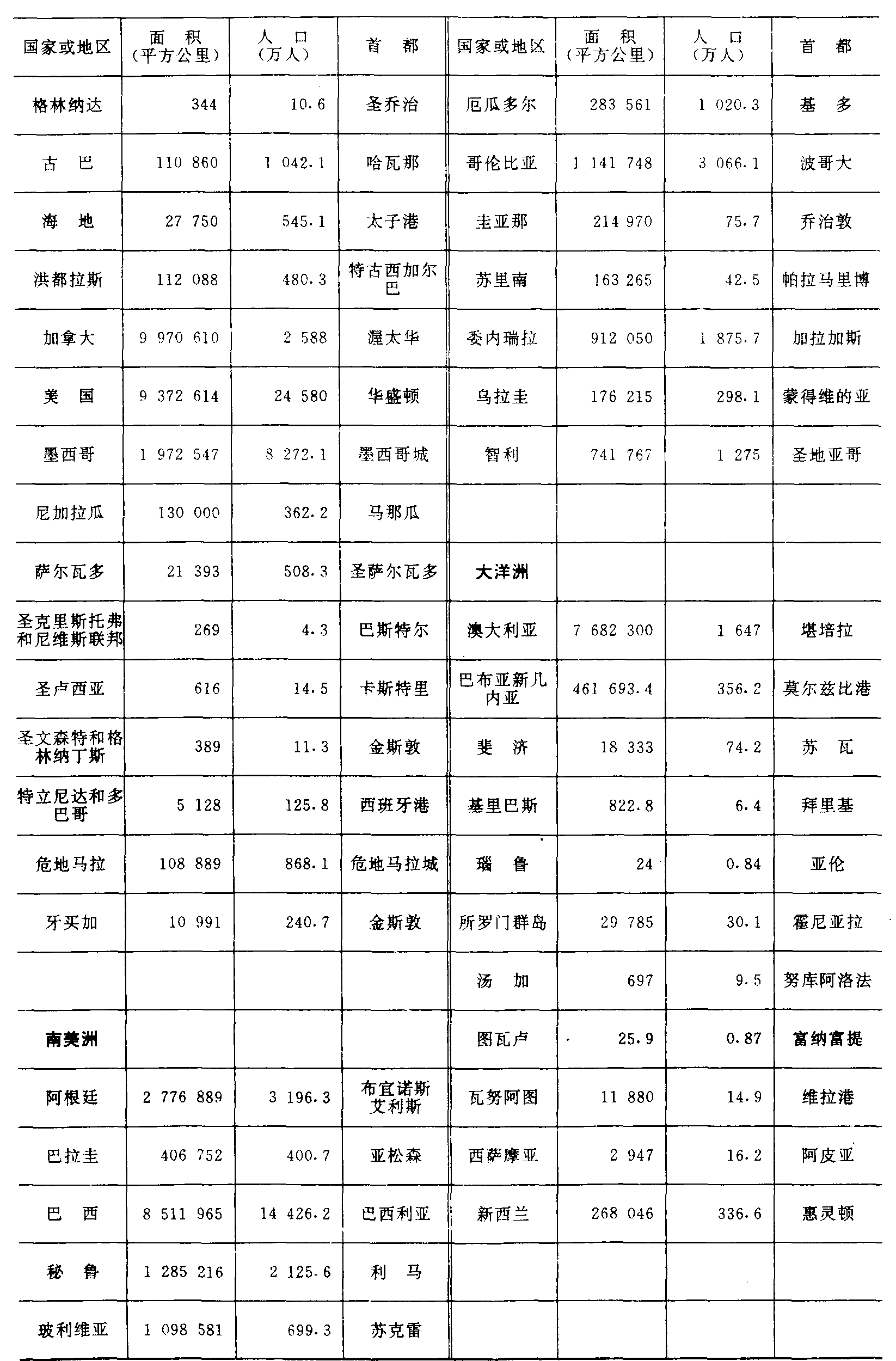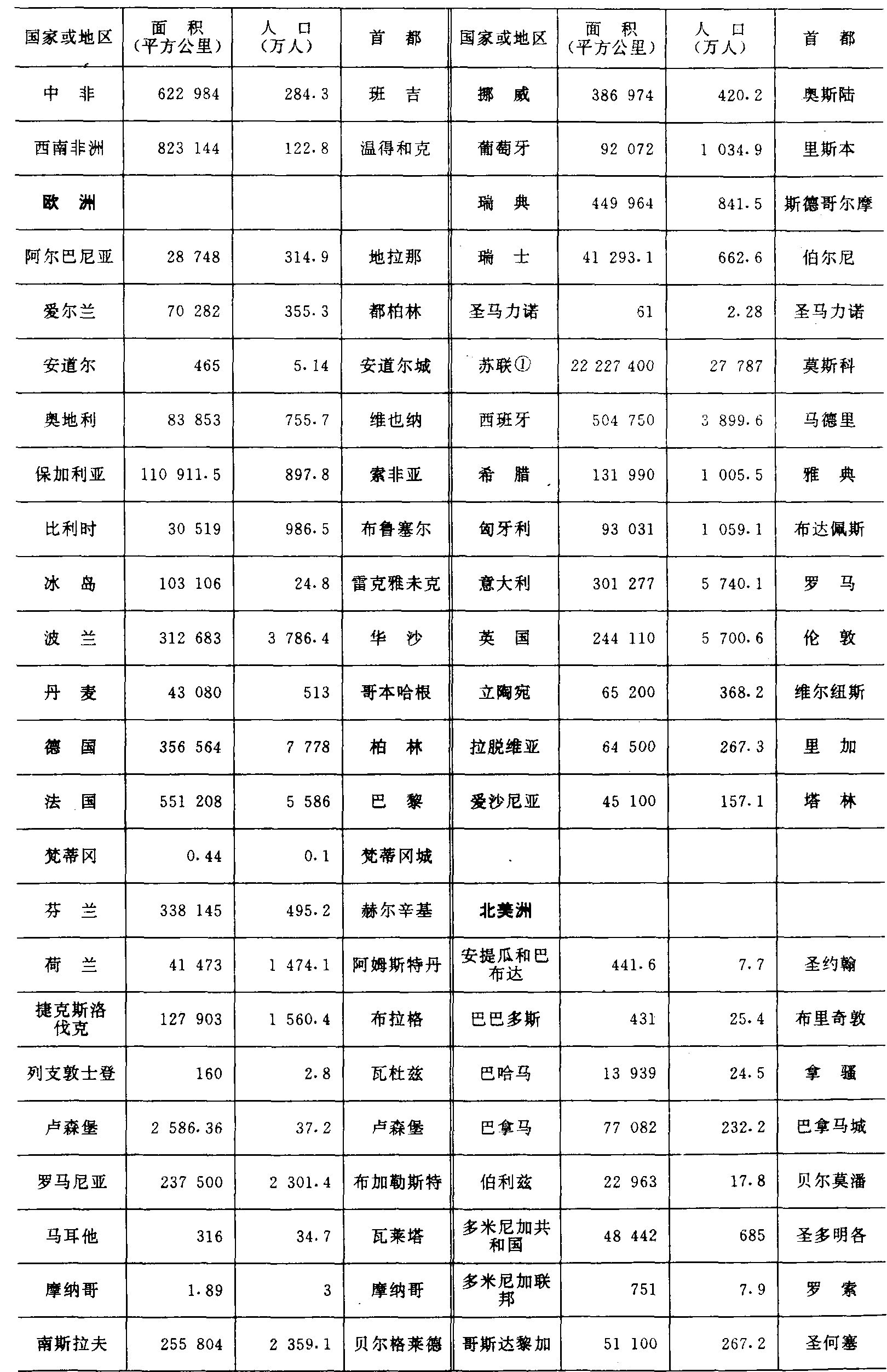 | 字词 | 中国小学教学百科全书︱附录(世界各国家和地区的面积、人口、首都(首府)表 (1988年)) | |