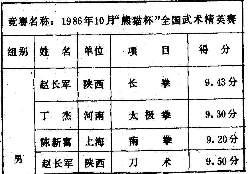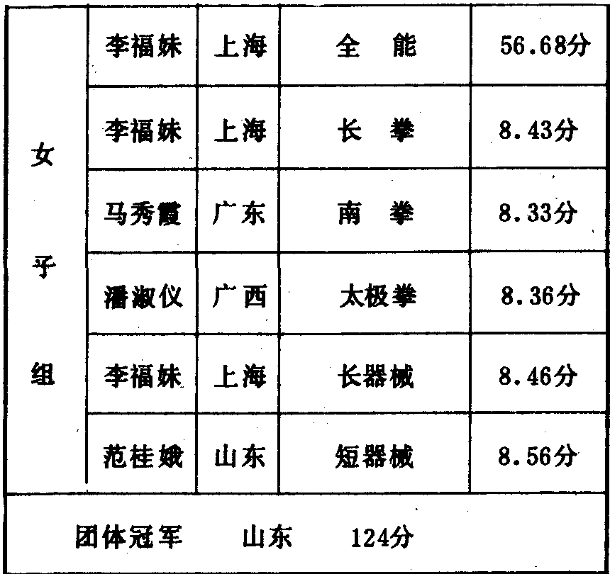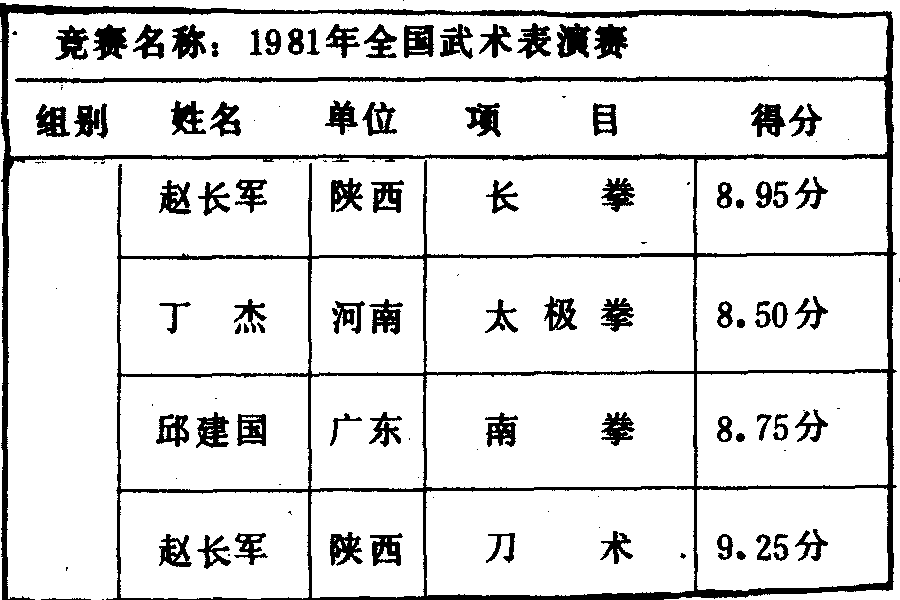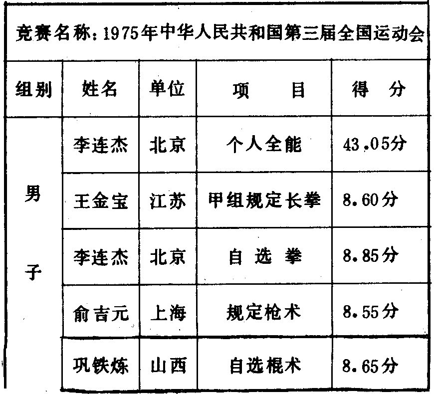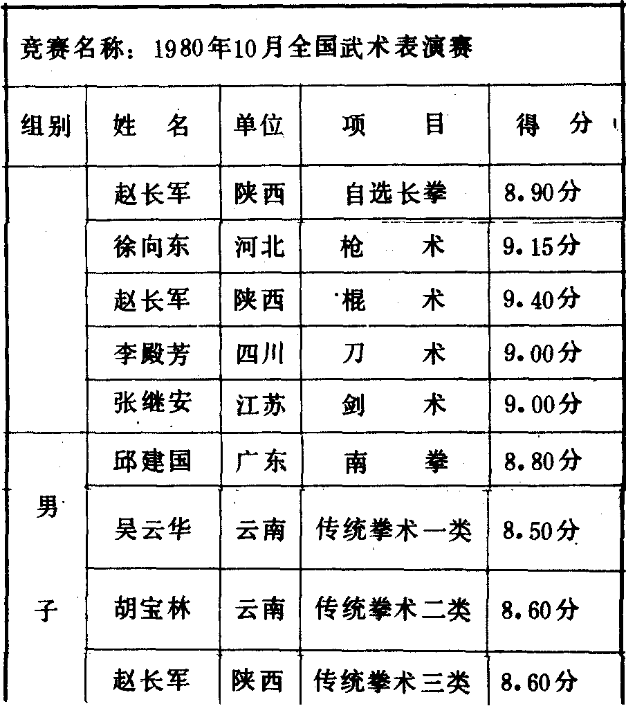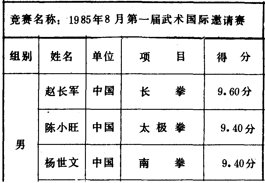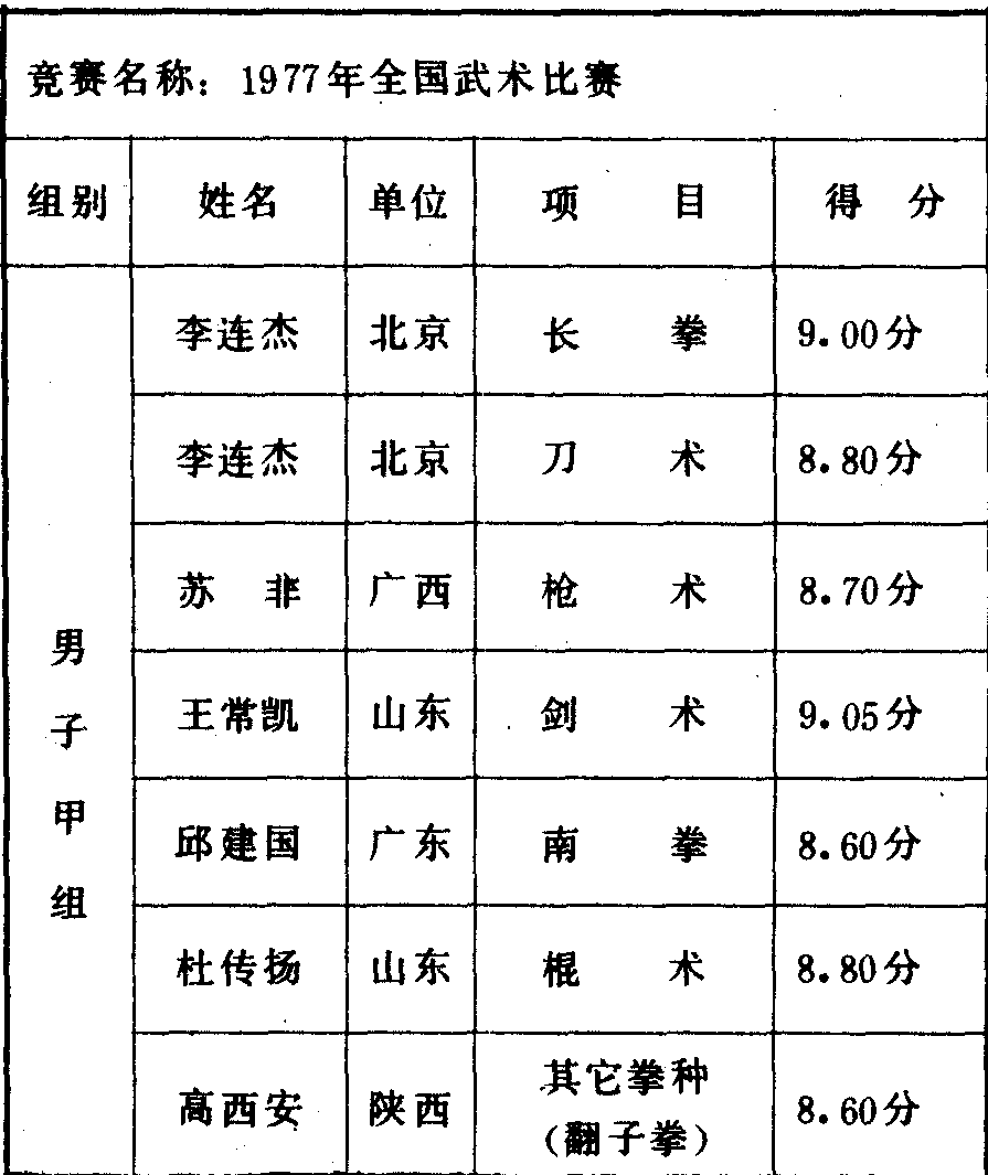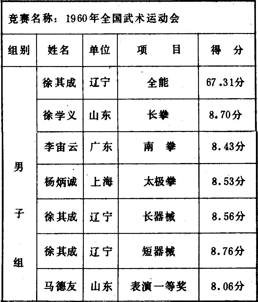 历届全国武术比赛冠军一览表
