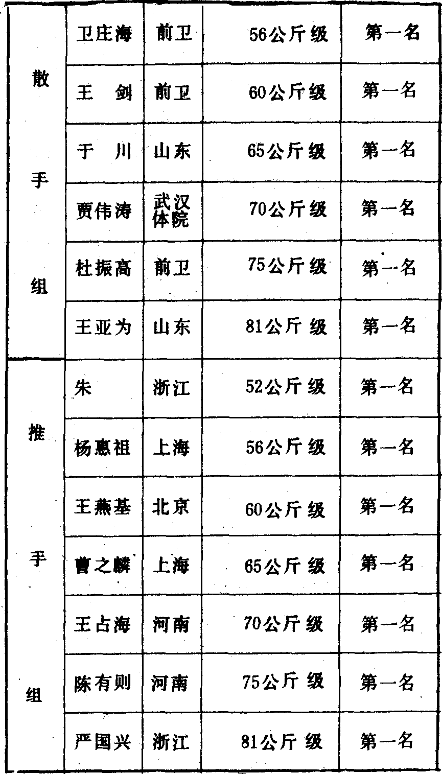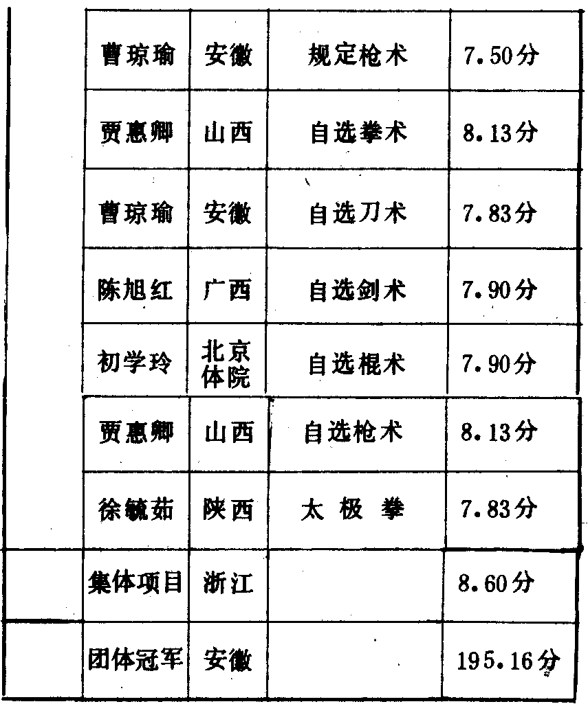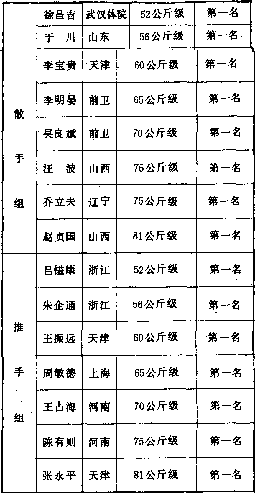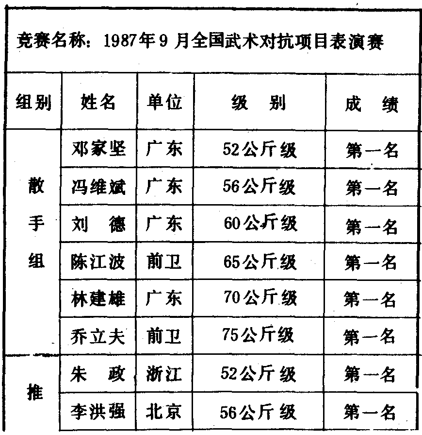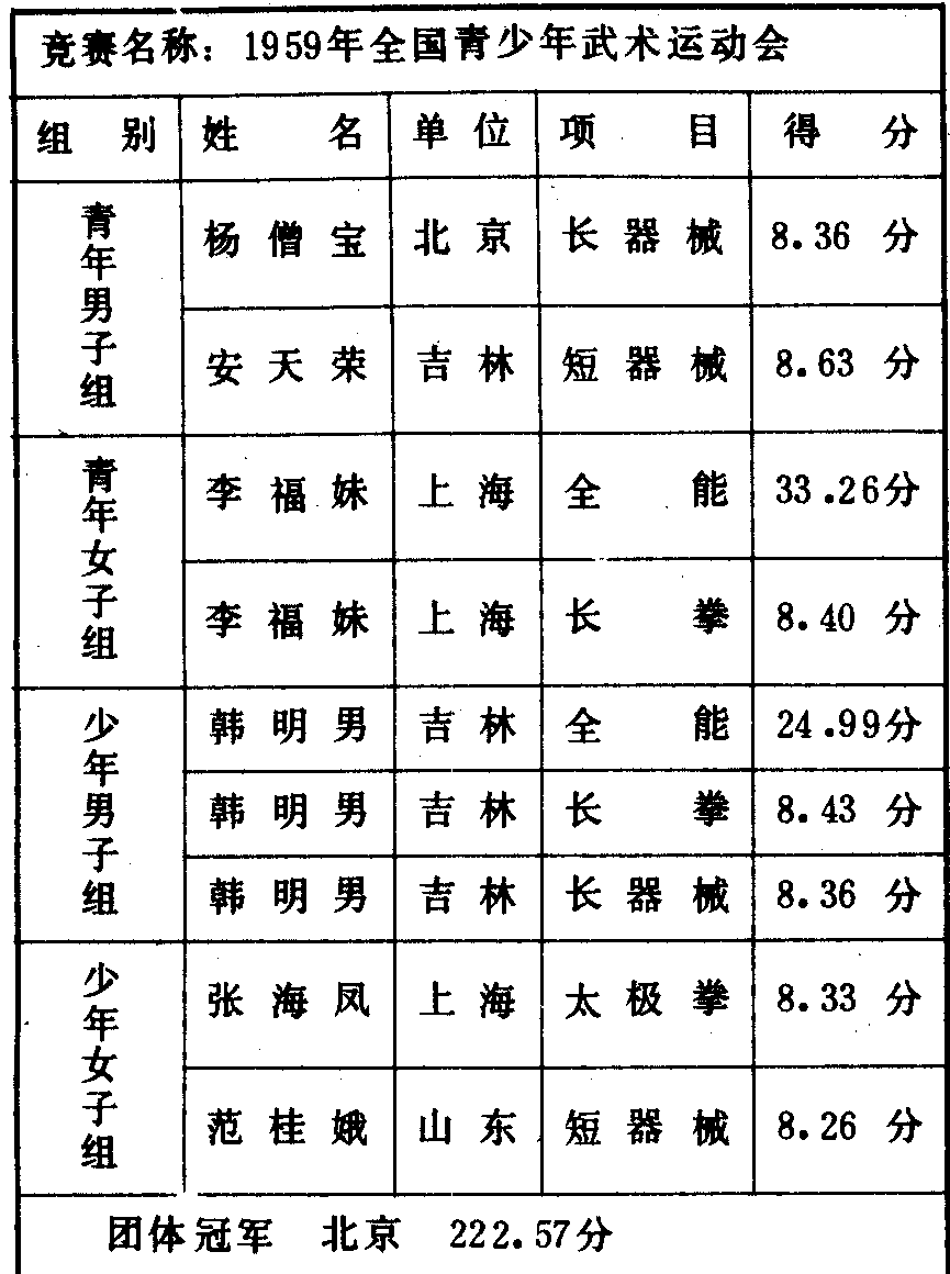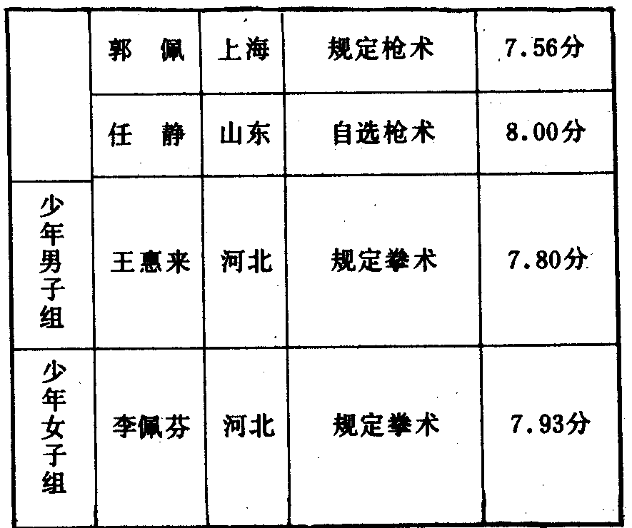 历届全国武术比赛冠军一览表