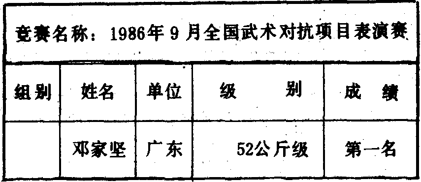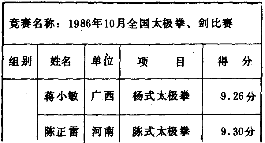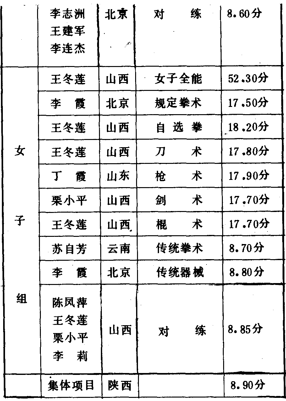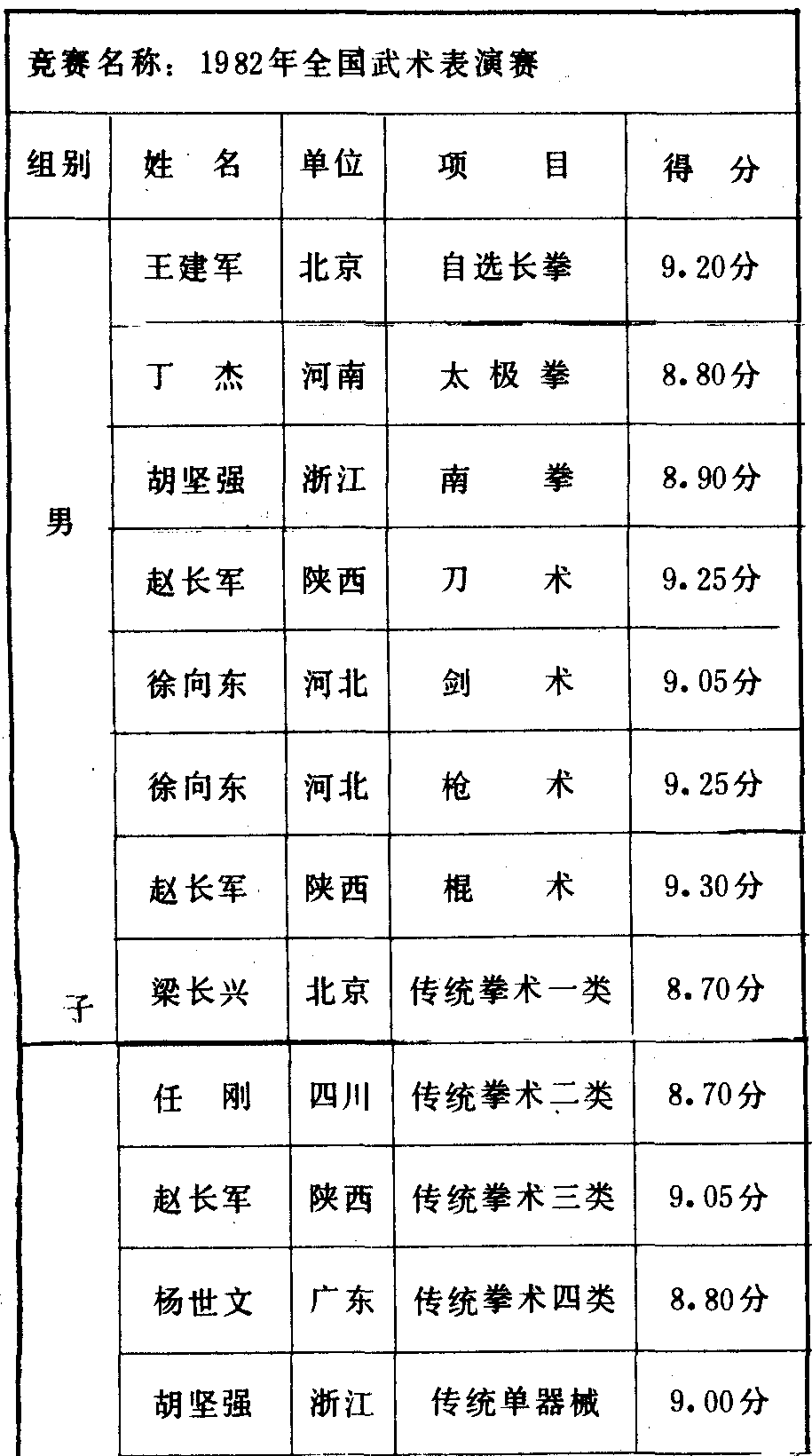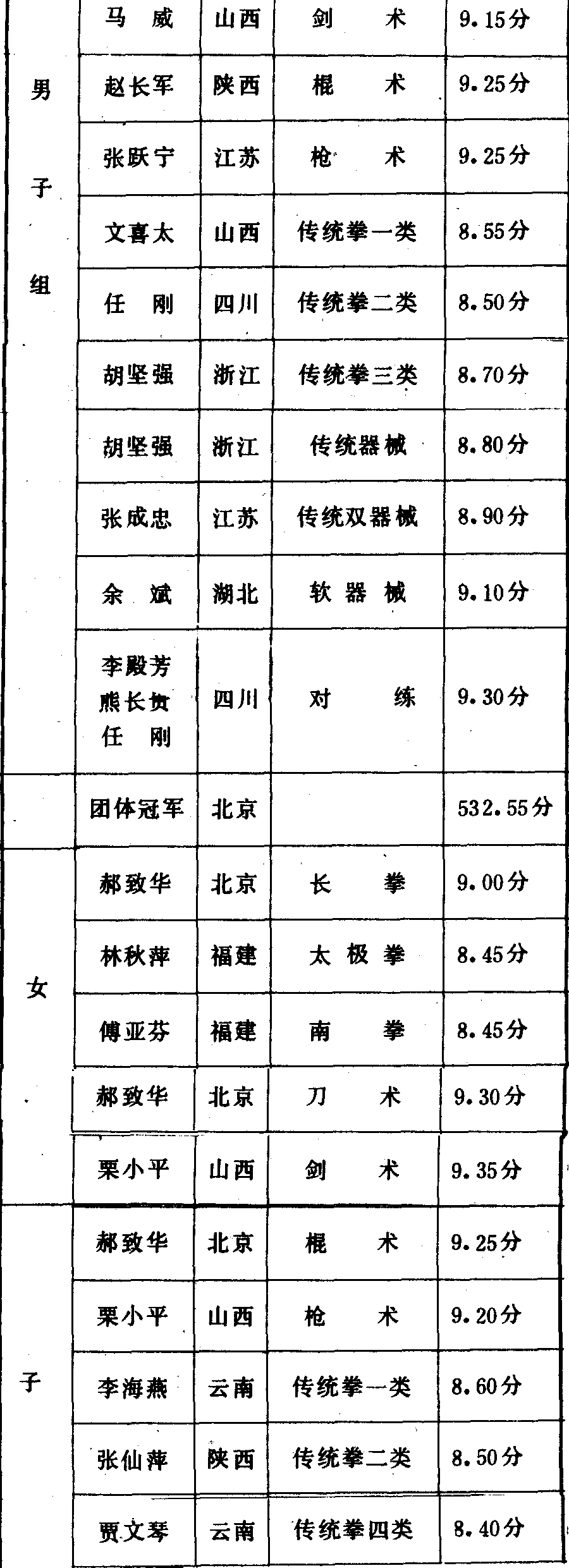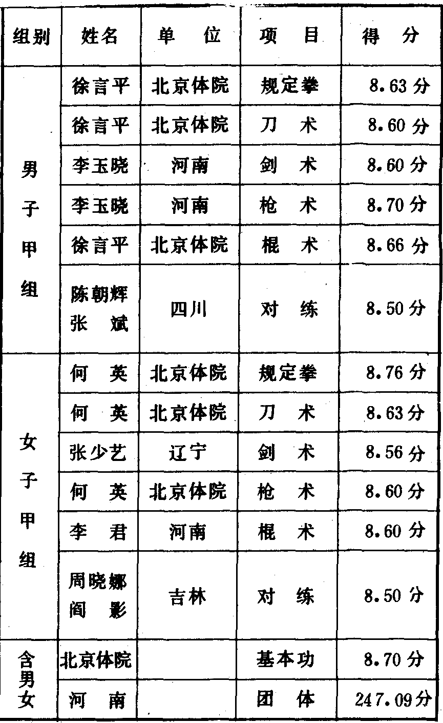 历届全国武术比赛冠军一览表