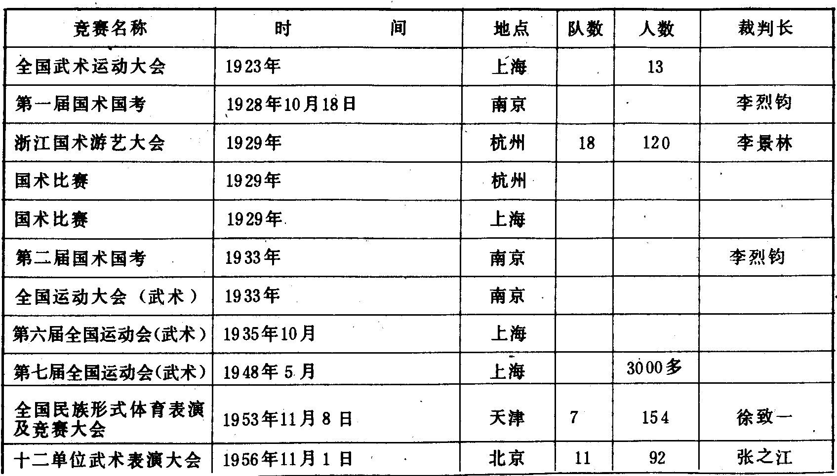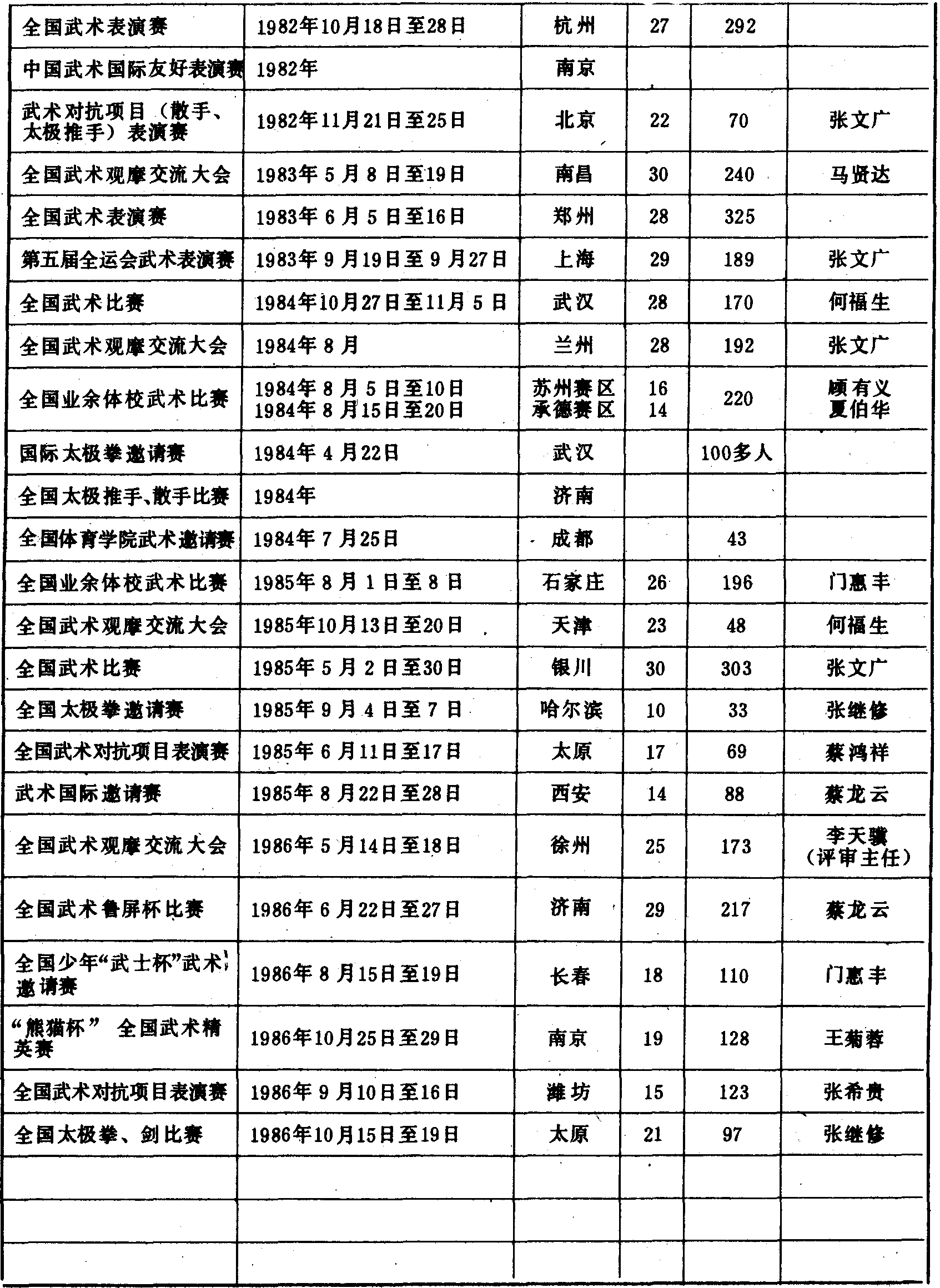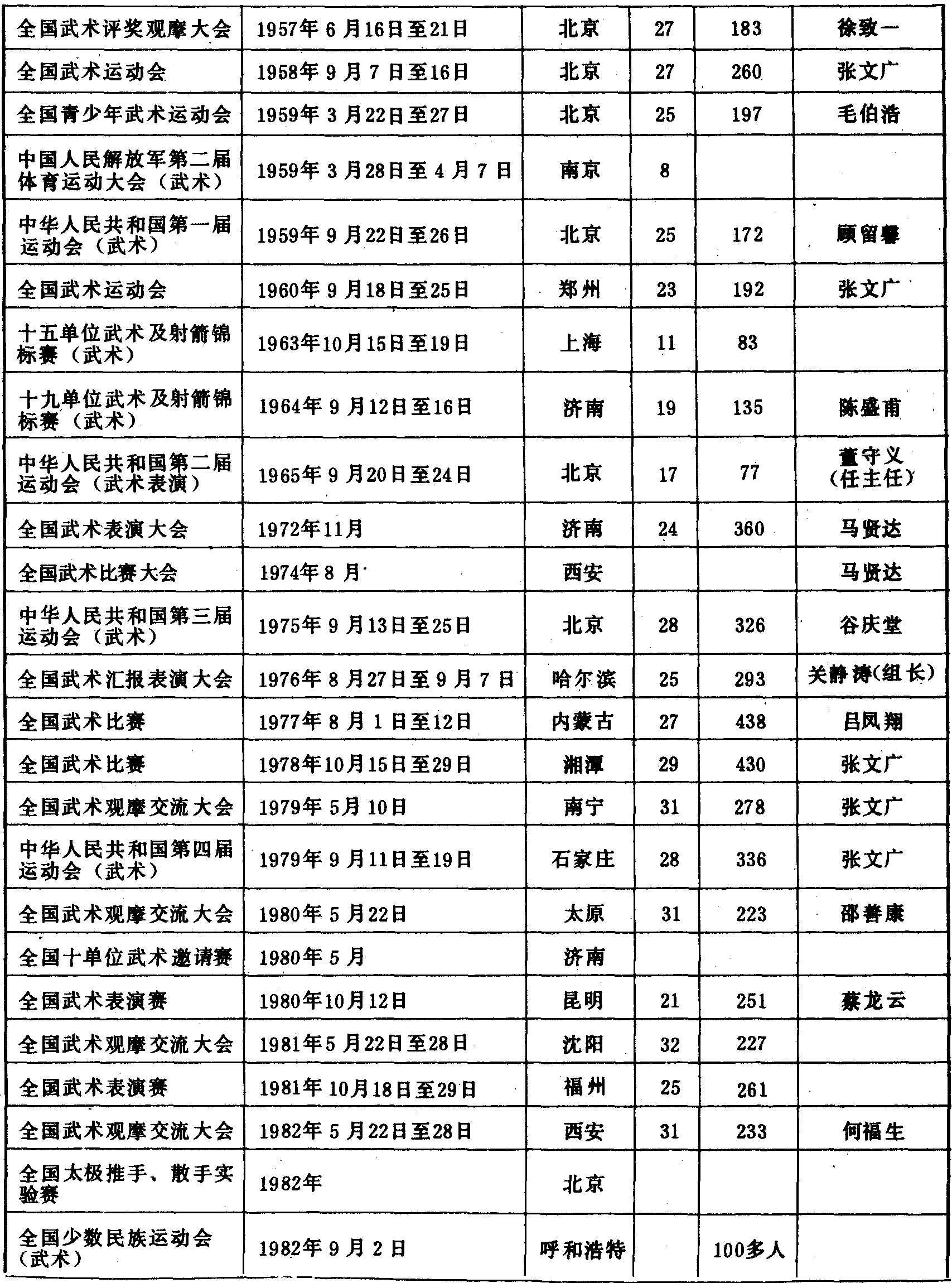 历届全国武术竞赛(运动会)