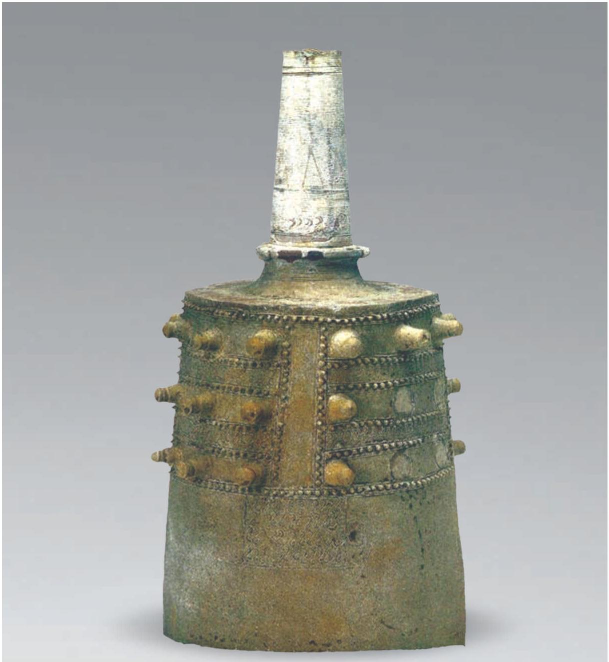 中国汉字文物大系︱圖版74 圖版74 原始瓷甬鐘 戰國 2003年出土於浙江省紹興縣福全鎮辛迪埠村