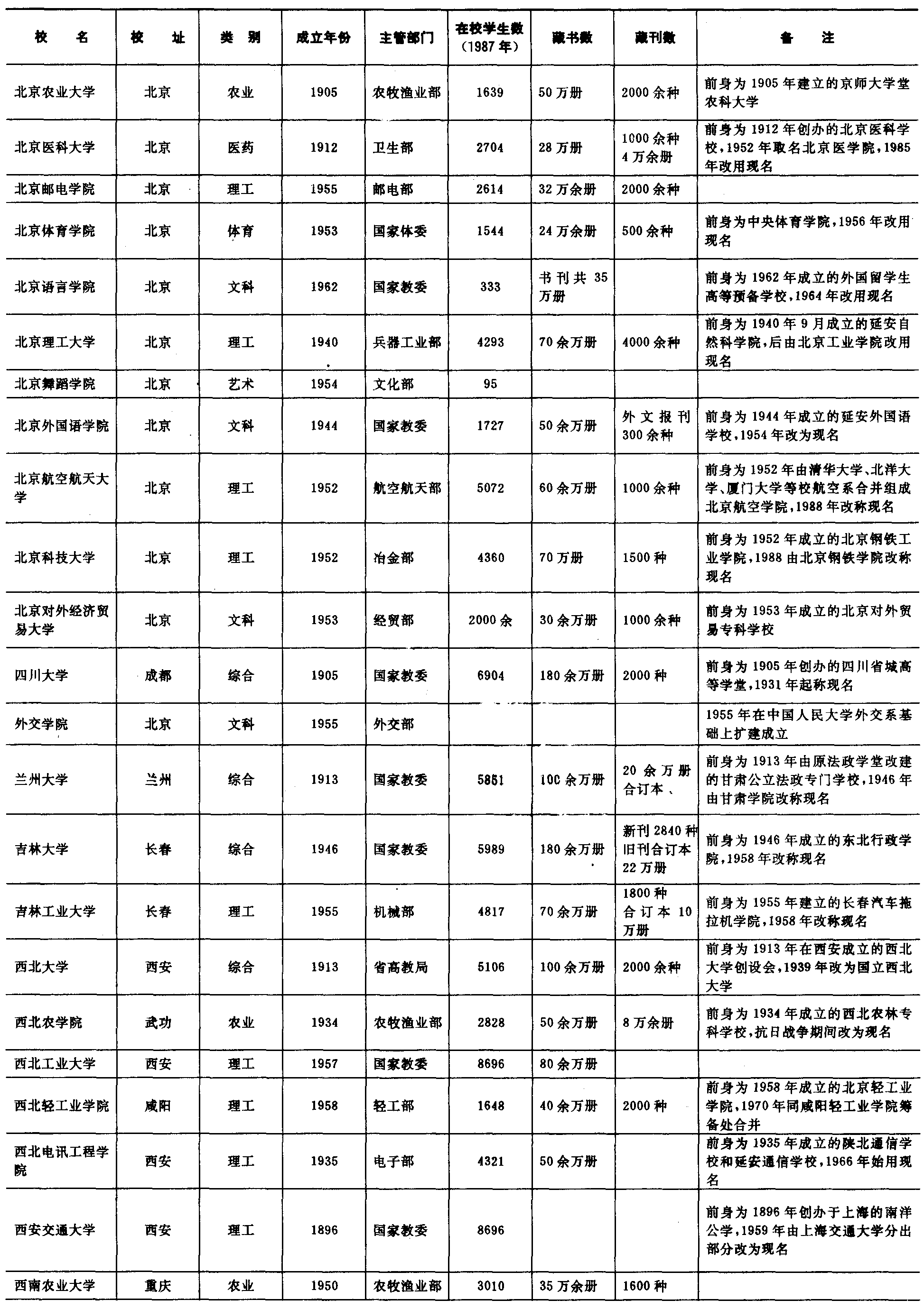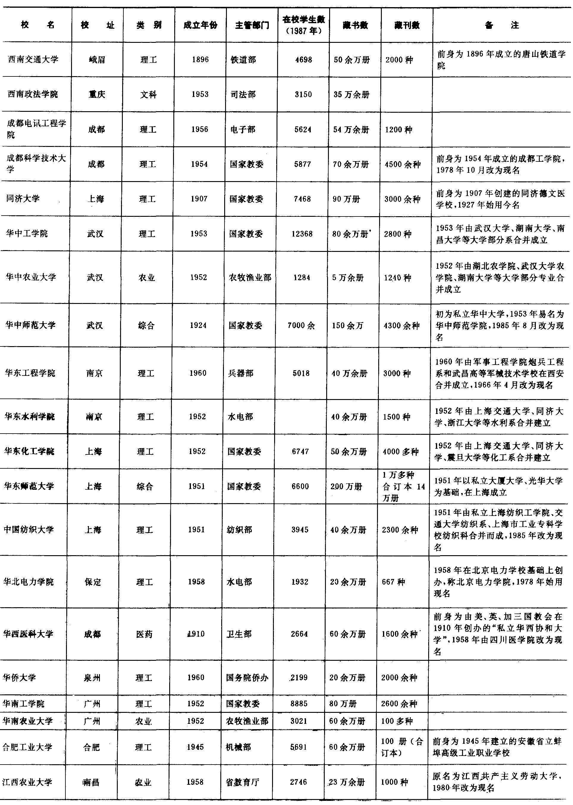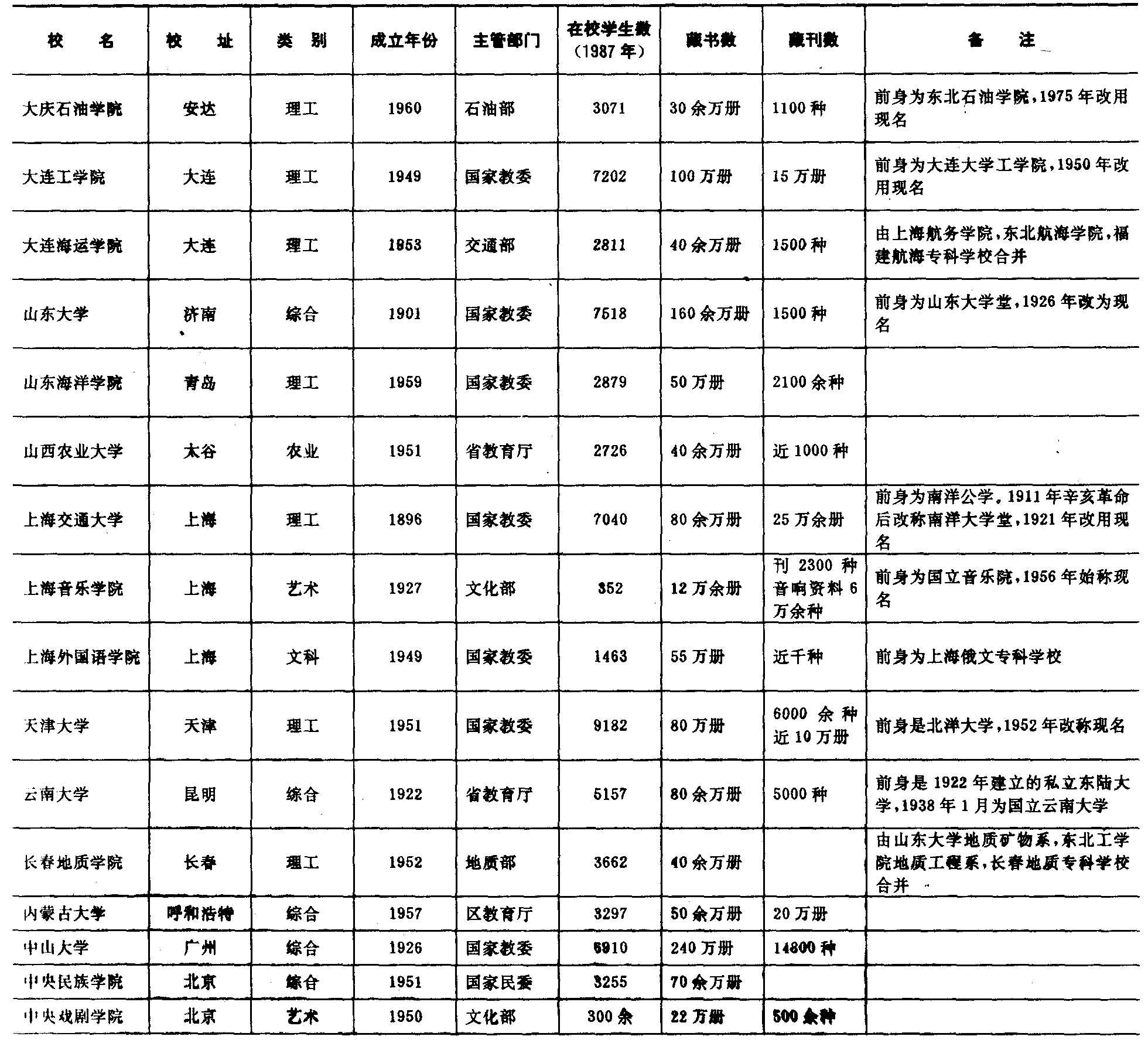 中国百科大辞典︱12. 中国教育综表 12. 中国教育综表 12—1 中国部分大学简况