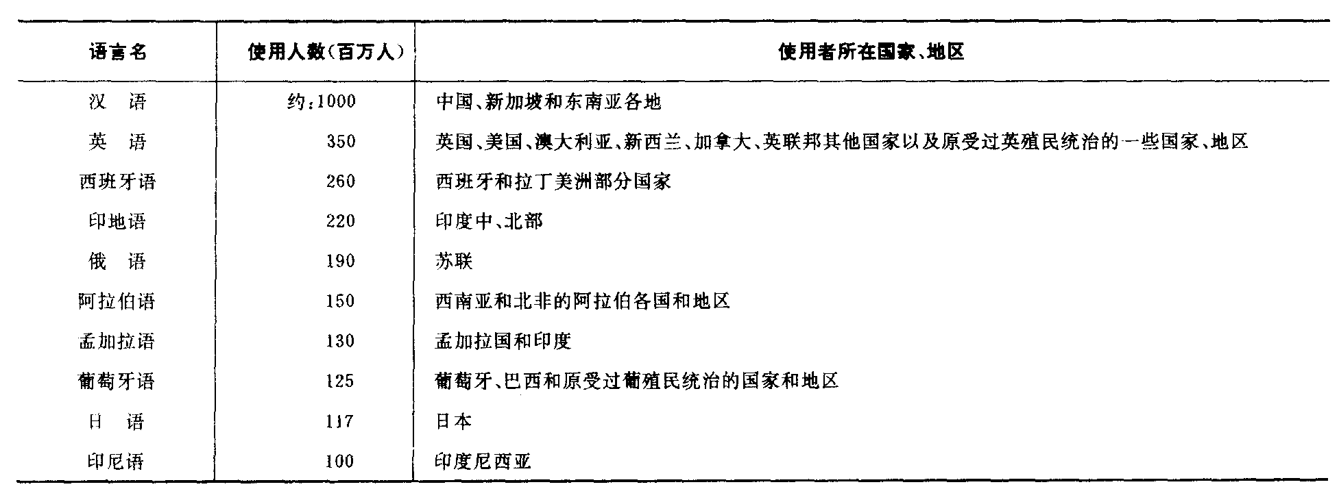 中国百科大辞典︱19.便览 19.便览 19—1 世界十种使用人数最多的语言