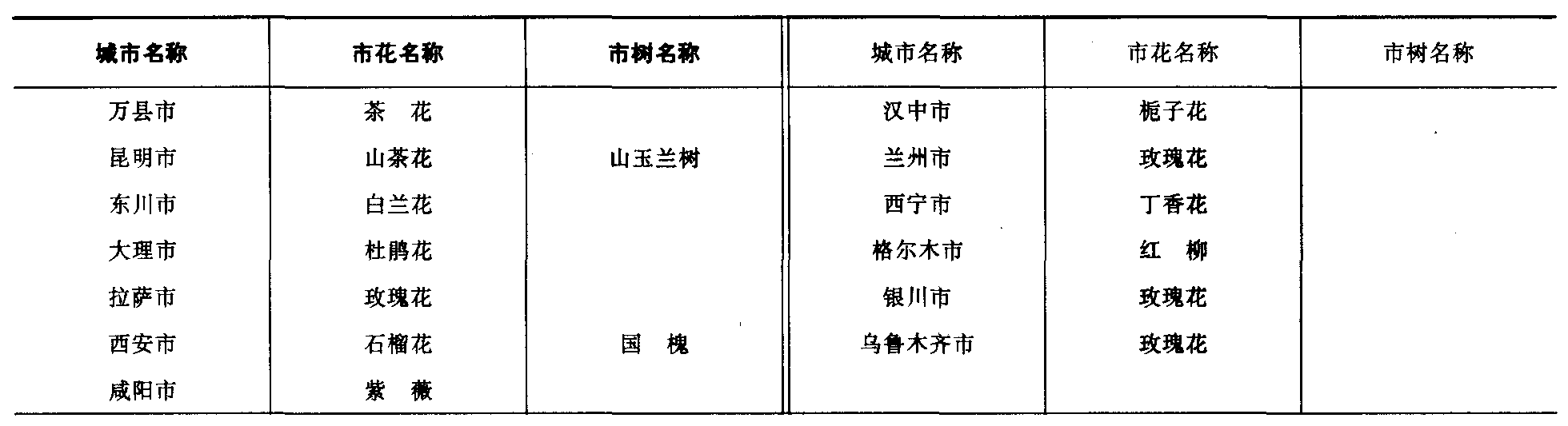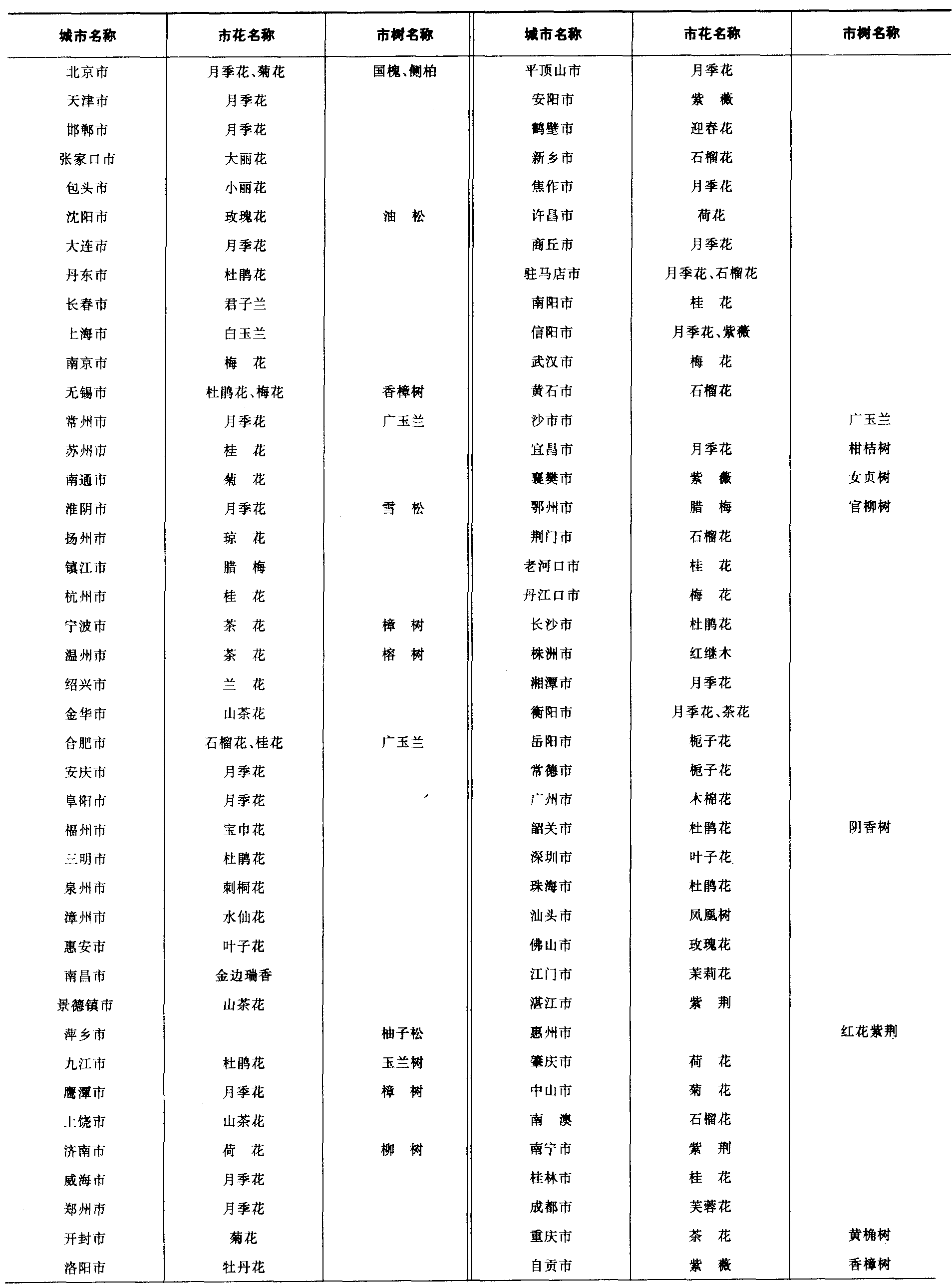 19—3 中国部分城市市花、市树