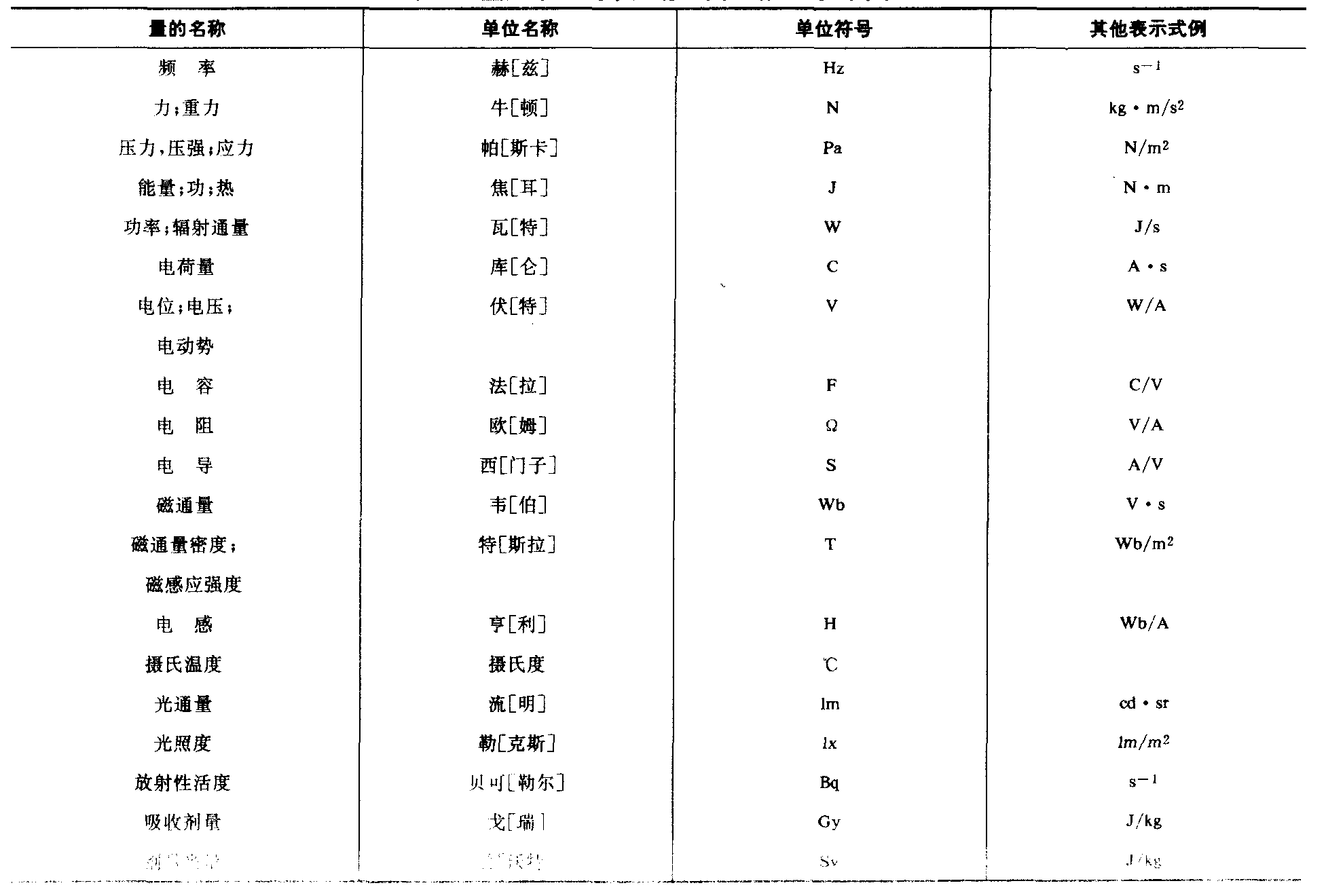 表3 国际单位制中具有专门名称的导出单位