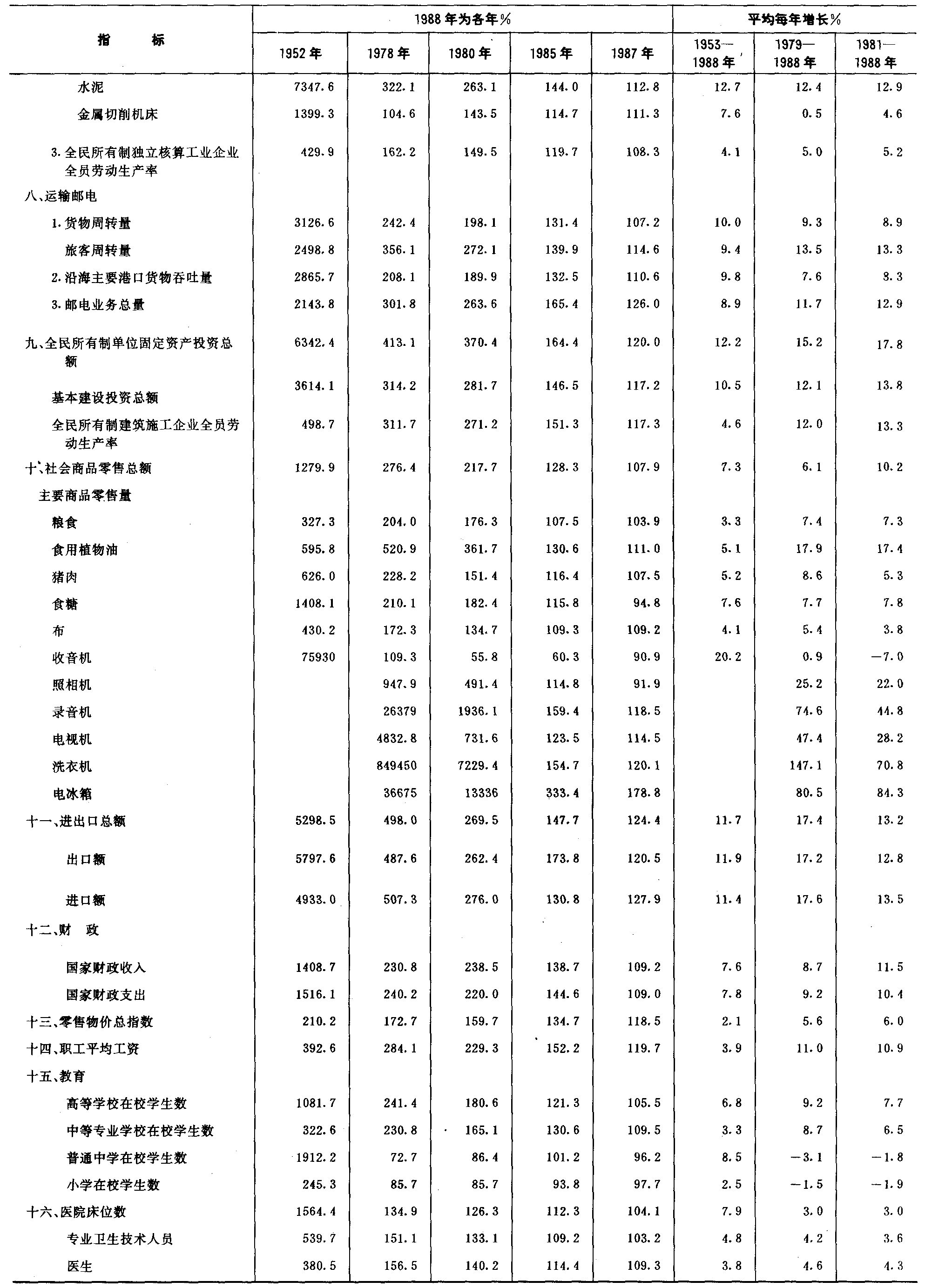 附:中国国民经济主要指标发展速度