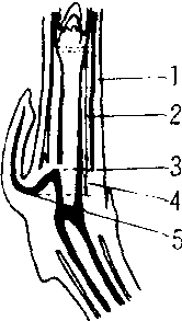 1. 胚芽鞘 2. 上胚轴 3.胚芽鞘节 4. 中胚轴 5. 盾片节