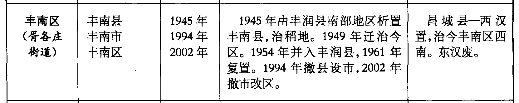 丰南区(胥各庄街道)丰南县丰南市丰南区1945年1994年2002年1945年由丰润县南部地区析置丰南县,治稻地。1949年迁治今区。1954年并入丰润县,1961年复置。1994年撤县设市,2002年撤市改区。昌城县—西汉置,治今丰南区西南。东汉废。