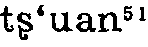 串读音ch·uan(ˋ),为uan韵目,属an—ian—uan—üan韵部。枢绢切,去,线韵。 ❶贯串;连贯。 ❷串动,由这里到那里走动。如:到处乱串。 ❸勾结干坏事。 上一条: 踳 下一条: 玔 串chuàn借:从亲戚家~点白面,捞的过水面。又上后屯借来一壶酒,这个热情呀,让我们实在过意不去!(霍长和 金芳《二人转档案》) 串游览,旅游。《王婆骂鸡》(贤孝):“乡里的婆娘她城里串,头上绕着个骨朵蒜。” 《巧嘴姑娘》(贤孝):“动物园里天天串,狼虫虎豹天天看。” 串chuàn❶将谷物颗粒的外壳儿去掉。〔例〕孔夫子给子华他们老太太的米,那是行人情,自然给的是串过的细米,那得满打满算。给原思的米,是他应关的俸禄,自然给的是没串过的糙米。(儿811)∣他来到人群外边一看,认识。谁呀?原来是缸瓦市粮店掌柜孙起龙。他怎么上这儿来啦?王府每月领的米归他的粮店给串米,吃的面是他那儿送的。(全四154) ❷疏通,去污垢,使之舒适。 〔例〕五哥——那个胡子——已经把丝袜子脱了, 串着指缝。(集40) 串〔chuan〕 1.qangb: 一~鱼。ad qangb mloul. 2.nggangt: 一~辣椒。adnggangtsheidzhal.3.ghos;一~猪肠子。adghosxednbeat.4.ndaox:他~到哪家去了?wudndaoxdandadbloudjibmongljul? 串门〔chuanmen〕ndaox;qanbbloudqanbzhux. 串亲戚〔chuanqin·qi〕nghudlanl. 串遊〔chuanyou〕jidqanb;nghudzal. 串《洪武正韵》樞絹·線;cuàn‖chuàn另见cǹg。 ❶串通;勾结:𪜷相~起来做否代志yīn siō cuàn kǐlai zuè pǎidâizì(他们串通起来干坏事)。 《新唐书·郑珣瑜传附郑覃》:“覃清正退約,與人未嘗串狎。”元·关汉卿《蝴蝶梦》第二折:“你也招承,我也招承,想是串定的。”《儒林外史》第十三回:“如今只消串出個人來嚇他一嚇,嚇出幾百兩銀子來。” ❷每每;老是:伊~讲无影话yī cuàn gǒng bbóynǎ wê(他老是说假话)。《荀子·方略》:“國法禁拾遺,惡民之串以無分得也。”杨惊注:“串,習也。”