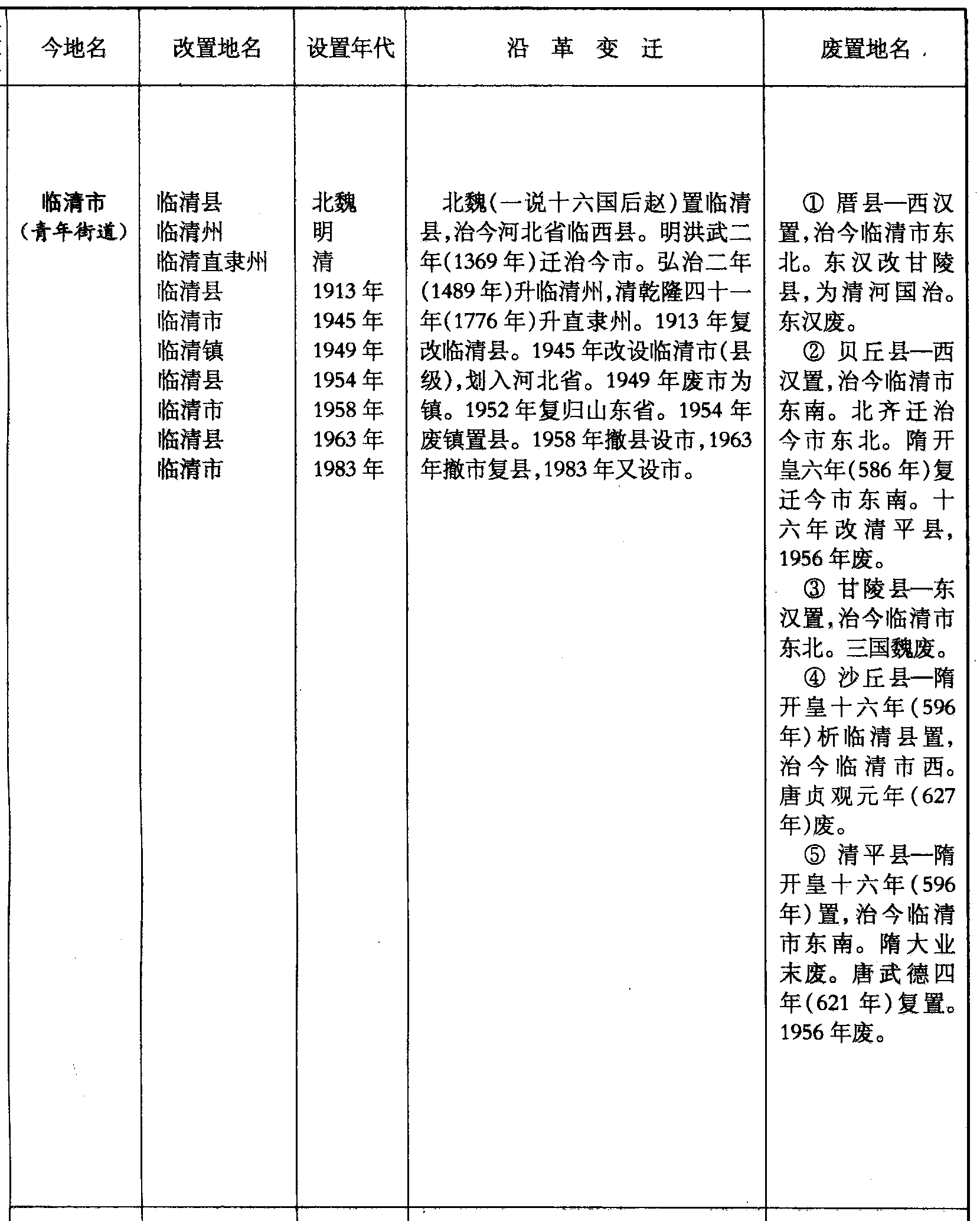 ❺ 清平县—隋开皇十六年(596年)置,治今临清市东南。隋大业末废。唐武德四年(621年)复置。1956年废。