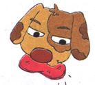 The dog took a piece of meat in its mouth.那条狗嘴里叼著一块肉。