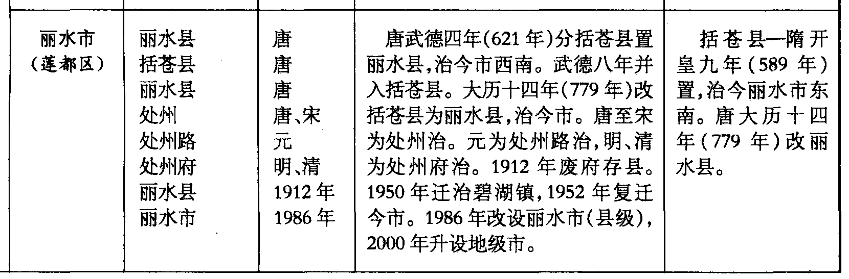 括苍县—隋开皇九年(589年)置,治今丽水市东南。唐大历十四年(779年)改丽水县。