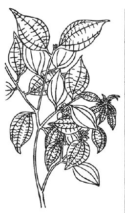 乌药 乌药药名。出《本草拾遗》。又名台乌药。为樟科植物乌药Lindera aggregata (Sims) Kos-term.的块根。主产浙江、湖南、安徽、广东、广西。辛,温。入脾、肺、肾、膀胱经。顺气止痛,散寒温肾。治脘腹胀痛,反胃吐食,宿食不消,气厥头痛,疝痛,痛经,小便频数,遗尿。煎服:3~9g。本品含挥发油,内有多种倍半萜成分:钓樟内酯(Linderalactone)、钓樟根内酯(Lindestrenolide)、钓樟烯醇(Linderene;Lin-derenol)、钓樟烯(Lindenene)、钓樟根烯(Linde-strene)等。还含新木姜子碱(Laurolitsine)、钓樟醇(即龙脑)、乌药酸(Linderaic acid)、谷甾醇。本品含龙脑(Borneol),有发汗、兴奋、镇痉、驱虫作用;所含菊薁(Chamaznlene)可抗炎、抗真菌。 乌药combined spicebushLindera aggregata(Sims.)Kosterm.,又称鳑魮树、斑皮柴。樟科,山胡椒属。常绿灌木。高可达5m。幼枝密生金黄色绢毛。叶互生,椭圆形或近圆形,长2.5~5 cm,宽1.5~4 cm,幼时密被柔毛,三出脉。伞形花序,腋生;花黄色;单性异株;雄蕊花药2室开裂。果卵形或近球形,径约4~7 mm。分布于陕西南部、甘肃南部、浙江、江西、福建、安徽、湖南、广东、广西、台湾等地;越南、菲律宾也有分布。喜光,耐旱,对土壤肥力要求不严。根入药能理气、健胃。果、根、叶可提取芳香油。 乌药 乌药为樟科灌木或小乔木植物乌药的根。主产于浙江、安徽、江西、陕西。辛,温。归肺、脾、肾、膀胱经。有行气止痛,温肾散寒之功。主治下列病证: ❶胸腹胀痛,疝气、痛经。胸腹冷痛者,可与香附相配各等分研末服;情志郁结,复感寒邪,气逆喘急,胸腹胀痛者,可配沉香、槟榔;寒滞肝脉,寒疝腹痛者,可配小茴香、干姜;肝郁气滞,行经腹痛者,可配香附、当归。 ❷用于肾阳不足,老年人小便余沥,夜尿频频或尿失禁以及小儿尿床等症,多与益智仁,山药相配。亦可用于治疗小儿脾阳不足,口水过多之证。 ☚ 香附 沉香 ☛ 乌药wū yào《本草纲目》木部第34卷乌药(83)。药名。 【基原】为樟科植物乌药Lindera strychnifolia(Sieb.et Zucc.)Villar的根,又名:旁其(《本草拾遗》),鳑魮、矮樟(《本草纲目》),香叶子树、白叶柴、吹风散、青竹香、钱蜞柴、钱柴头、盐鱼子柴。 【性味】辛,温。 ❶《开宝本草》:“味辛,温,无毒。” ❷《药品化义》:“味辛带微苦,性温。” 【归经】入脾、肺、肾、膀胱经。 ❶《汤液本草》:“入足阳明、少阴经。” ❷《雷公炮制药性解》:“入肺、脾二经。” ❸《本草经解》:“入足厥阴肝经、手太阴肺经。” ❹《本草从新》:“上入脾、肺,下通膀胱与肾。” 【功用主治】顺气,开郁,散寒,止痛。治气逆胸腹胀痛,宿食不消,反胃吐食,寒疝,脚气,小便频数。 ❶《本草拾遗》:“主中恶心腹痛,宿食不消,天行疫瘴,膀胱肾间冷气攻冲背膂,妇人血气,小儿腹中诸虫。” ❷《日华子本草》:“治一切气,除一切冷,霍乱及反胃吐食,泻痢、痈疖疥癞,并解冷热。” ❸王好古:“理元气。” ❹《本草通玄》:“理七情郁结,气血凝停,霍乱吐泻,痰食稽留。” ❺《玉楸药解》:“破瘀泄满,止痛消胀。” 【用法用量】内服:煎汤,一钱半至三钱;磨汁或入丸、散。 乌药wūyào中药名。出《本草拾遗》。别名台乌药。为樟科植物乌药Lindera aggregata(Sims) Kosterm. 的根。主产于浙江、湖南、安徽、广东、广西。辛, 温。入脾、肺、肾、膀胱经。顺气止痛, 散寒温肾。治脘腹胀痛, 宿食不消, 反胃呕吐,气厥头痛, 疝痛, 痛经, 小便频数。煎服:3 ~9 克。本品含挥发油, 内有钓樟烯醇、钓樟烯、钓樟根烯等多种倍半萜成分。还含钓樟醇(即龙脑)、新木姜子碱、谷甾醇。