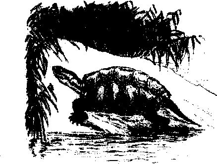 图301 乌龟 ☚ 龟鳖目 鳖 ☛ 乌龟 乌龟wugui爬行类动物,又名金龟、草龟。半水栖,平时生活在河流、湖泊里,经常浮出水面呼吸空气,有时也爬到岸上活动。在岸上产卵,埋在沙里,依靠温暖的阳光,自然孵出幼龟。龟的身体比较扁,头小,尾短,身体腹背部都有硬甲,也叫龟壳,上面有暗褐色斑纹,背部黑褐色,有三条纵向隆起;头、颈侧面有黄色线状斑纹;四肢略扁平,指、趾间有蹼,有利于游泳划水;龟的头、尾和四肢表面长有鳞片,遇敌害时都可缩进龟壳内。龟没有牙齿,长角质嘴,指、趾端有爪,主要以植物及小鱼虾为食。龟可用作实验动物,肉营养丰富,可供食用。没有煮过的龟甲是著名的中药,叫龟板,对人体有补益作用。 ☚ 爬行动物 昆虫 ☛ 乌龟 乌龟Wugui又叫草龟、金龟,龟鳖目龟科的一种常见动物,学名为Chinemys reevesii。体型不大,体长10—18厘米,身体背面黑色或棕色,腹面颜色较淡。具有背甲和腹甲,十分坚硬,是一种被动的保护装置,在遇到敌害时,可将头、颈、四肢和尾都缩入甲壳之内,使天敌无从下口。在背甲上具有三条纵行的棱嵴。头顶前面比较光滑,后面的皮肤呈细颗粒状,尾细而短。四肢扁平,前后肢的趾间均具蹼。一般雄龟个体较小,壳呈黑色,尾较长;雌龟个体较大,壳为棕黄色,尾较短。大多生活于河流、池塘或稻田之中,有时也爬到岸上活动。杂食性,以鱼、虾和植物为食。耐饥能力很强,可数月不食。每到冬季便到水底淤泥里边冬眠。产卵期为每年的5—8月份,每次产卵5—7枚,一年可产3—4次卵。卵置于事先挖好的洞穴之中,产卵完毕,雌龟再扒土将卵盖上,并将土用腹甲压实。卵在沙土中孵化,孵化期一般为50—80天。