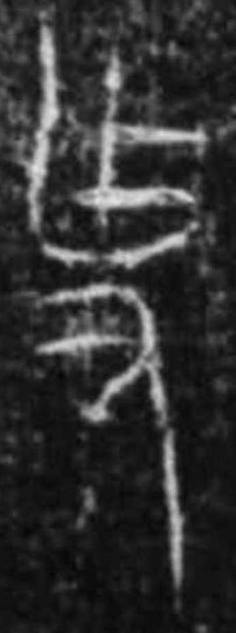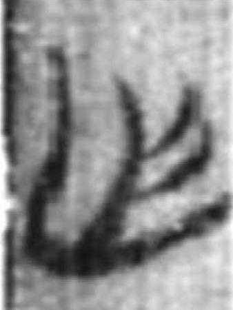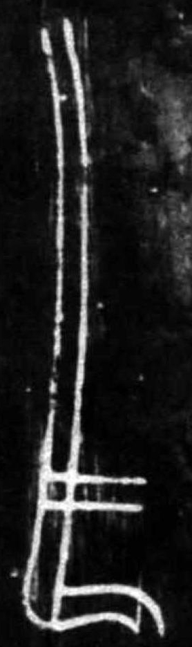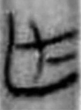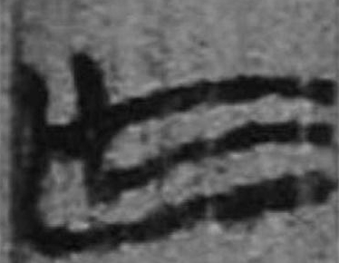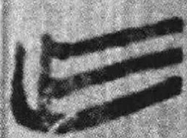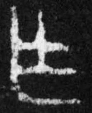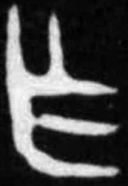 可能是建築業的工具形。為木材拋光之刨刀? 或加丰,表示木材鋸削痕?