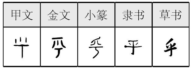 乎 甲骨文; 金文; 篆hū[象形會意。(《説文》:“乎,語之餘也。從兮,象聲上越揚之形也。”乎,甲骨文在“丂”上加三豎〈表示聲音,如“彭”旁的彡〉,金文又在三豎之上加一橫。丂〈手杖〉在空中揮舞時能發出“呼呼”聲。乎爲“呼”本字,因聲借爲助詞,表示疑問〈得之乎?〉;表示揣度〈其在斯乎?〉。同“於”〈合乎規律〉。嘆詞〈天乎!地乎!〉。乎被借用,另造“呼”字。)] 《詩經·鄘風·桑中》:“期我乎桑中,要我乎上宫。”(約我等候在桑中,邀我相會在上宫。) 乎hū(5画)
