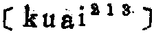 乖guāi❶背离。张祜《题灵隐寺师一上人十韵》:道性终能遣,人情少不乖。 ❷失误。李商隐《今月二日不自量度》:早岁乖投刺,今晨幸发蒙。 乖guāi❶違背,不協調。蔡邕《述行賦》:“迫嵯峨以乖邪兮,廓巖壑以崢嶸。” ❷謬誤。《文選》揚雄《解嘲》:“有建婁敬之策于成周之世,則乖矣。”《漢書》作“繆”。 ❸乖巧,詭詐。見“乖詭”。 乖读音g·uai(-),为uai韵目,属ai—uai韵部。古怀切,平,皆韵。 ❶违背;不顺;不和谐;违反情理。 ❷机灵;伶俐;乖巧。如:这孩子真乖。 上一条: 嘬 下一条: 掴 乖小孩没疾病或病愈了。 乖guāi见本页“掴打”。 乖guai1(形)漂亮;可爱:她算得是这西景镇上第一号~堂客,娘家姓白名字叫如玉。(青83·8·26)|这娃儿笑起来很~。 乖kuɛi213❶违背,不和谐: 性情背乖。《新书·道术》: “刚柔得适谓之和,反和为乖。” ❷小孩子懂事,不烦人: ~孩子,听妈话。《说文》: “乖,背吕也,象胁肋形。” 《玉篇》: “戾也,异也,睽也,背也。” 乖的 ❷义当为反训义。 乖〔guai〕ras. 乖guai44[kuai]❶(小孩儿)听话 ⊳伊囝真~(她小孩儿很听话)。 ❷ (菜) 老, 不嫩 ⊳者芥菜野~(这芥菜不嫩)。 乖guāi <绥德> ❶(小孩儿)平安无恙:娃娃~着叻吧?~着叻。 ❷(小孩儿)不调皮,听话:这娃可~叻。 乖ㄍㄨㄞguāi三3424①动碰;接触;撞击。⑴冀鲁官话。山东寿光〖 〗。别~像片。山东淄博。《聊斋俚曲集・禳妒咒》第三回:「连年来作践非常,孩儿入阁又穿房,跳圈儿~破了红纱帐。」⑵中原官话。山东曲阜。清贾应宠《历代史略鼓词・正传》:「是他(方孝孺)那世里烧了棘子有刺烧不得~了锅全句意思是那世里做了对不起人的事情。」②动害怕;怕。吴语。浙江永康。③动用巴掌拍打。北京官话。北京〖 〗。话剧《小井胡同》:「对!大妹妹,抽!你这小手往我脸蛋上~这么一下,小环子对得起你,半年不洗脸。」④形差错。西南官话。贵州榕江。萧腾蛟《榕江方言词语考源》:「《楚辞・怨世》:『吾独乖刺而无当兮』,注:『~,差也。』《广雅・释诂四》亦云『~,差也。』…今榕江谓事情差错『~』,音〖 〗。」⑤动识时务。吴语。江苏苏州〖 〗。⑥形(小孩)健康;病愈。⑴中原官话。陕西商县张家塬〖 〗。这娃致两天~病愈啦没有?⑵晋语。陕西北部〖 〗。小孩儿都~健康着哩吧?‖「你家小儿~吧?」「不~小儿有病。」⑶客话。罗翙云《客方言・释言》:「小儿无恙曰~。妇女相见问:细子小儿~否?」⑦形漂亮;美好;可爱(多指小孩儿,也指男女青少年)。⑴西南官话。湖南常德〖 〗。四川成都〖 〗。小静嘴巴甜,样样儿~,硬是逗人爱‖她算得是这西景镇上第一号~堂客‖这娃儿笑起来很~。巴金《秋》五:「琴故意称赞淑贞道:究竟还是四表妹~。」四川奉节〖 〗。你好~哟,好迷人哟,世上再找不出你这样~的姑娘家了。民歌:「妹子生得~,赛过仙女下凡来。千山画眉飞来看,猴子见了筋斗栽。」四川达县〖 〗。广西南宁。《广西情歌・见妹生得白皎皎》:「看妹生得实在~,兰袄白衬红花鞋。」《广西情歌》第三集:「妹鞋~,妹鞋盖过柳州街。」⑵湘语。湖南益阳。周立波《山乡巨变》:「看这茶子花,好~,好看呵。」湖南双峰〖 〗、吉首〖 〗。⑶客话。江西南部。《赣南的客家民歌》:「哥哥~来哥哥~,可要河南草帽戴。」⑷乡话。湖南沅陵〖 〗。⑧形成人性情温和。晋语。陕西北部〖 〗。⑨形形容事办坏了;糟糕了。西南官话。云南昆明〖 〗。刚要付钱,才发现钱包没带在身上,你看~不~?⑩形坏。冀鲁官话。河北。清光绪十年《畿辅通志》:「坏呼作~。」⑪形身倦。晋语。山西。清光绪十年《山西通志》:「身倦曰~。」⑫形险邪。⑴中原官话。山东曲阜。清桂馥《札朴・乡言正字》:「险邪曰~。」⑵晋语。山西太谷。⑬形狡诈。⑴西南官话。四川成都。清张慎仪《蜀方言》:「小儿黠狯曰~。扬子《方言》凡小儿多诈而狯或谓之姡。…翟灏云姡字长言之则转为~。」⑵吴语。江苏苏州。《海上花列传》第二回:「王阿二沉下脸道:『耐倒~杀哚!耐想拿件湿布衫拨来别人着仔,耐末脱体哉,阿是?』」⑭形蔬菜、水果长得过了适口时期:老;粗。闽语。福建福州〖 〗。~菜。福建福安〖 〗、永泰、古田〖 〗、宁德〖 〗、寿宁〖 〗、闽侯洋里〖 〗。菜真~。福建厦门〖 〗。油菜伤~油菜太老‖蕹菜~空心菜老了‖梨子真~梨子太老了。⑮形怪。胶辽官话。辽宁大连〖 〗。⑯叹表示惊异。江淮官话。王莹《宝姑》:「『三十到三十五块大龙洋?~!要得了这许多钱?』姨婆吃惊地问。」⑰象声烧火时风箱的响声。晋语。山西忻州〖 〗。你行你家真儿今天晌午中午~~的烧火蒸甚哩?⑱象声形容妇女不停地大骂的声音。晋语。山西忻州〖 〗。他老婆一天儿经常~~的骂他哩。   乖guai❶违背,不和谐,不一致。《韩非子·亡征》:“内外~者,可亡也。”(可亡:能够灭亡它。)《论衡·雷虚》:“天人相违,赏罚~也。”(“违”与“乖”为同义对文。) ❷分离。同义合成词:“乖离”。《后汉书·灵思何皇后纪》:“死生路异兮从此~。” 乖ɡuāi❶机灵;伶俐 △ 嘴~|~巧。 ❷(小孩儿)不淘气;听话 △ ~孩子。 【注意】由“千”和“北”构成。笔顺为:.jpg) .jpg) .jpg) .jpg) .jpg) .jpg) .jpg) 。 乖guāi