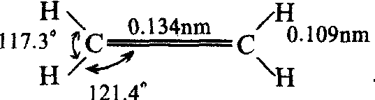 乙烯分子的碳原子和氢原子都分布在同一平面上,碳碳双键是由1个σ键和1个π键组成 (参见碳碳双键)。 工业上乙烯是由石油产品 (直馏汽油、粗柴油或原油) 裂解 (深度裂化),再经分离提纯制得,并在加压液化后贮存和运输。实验室里乙烯由乙醇在催化剂 (如硫酸或磷酸、氧化铝等) 存在下分子内脱水制得。 由于分子内含有双键,乙烯易发生加成反应、聚合反应和氧化反应。乙烯与氯加成,生成1,2-二氯乙烷,后者在催化剂存在下,失去一分子氯化氢,生成氯乙烯。乙烯在磷酸催化下与水加成生成乙醇。乙烯与苯在催化剂存在下发生傅氏反应,生成乙苯,乙苯再经催化脱氢,生成苯乙烯。 在高压(100~200MPa),温度200~300℃,用氧或过氧化物引发,可以聚合成低密度聚乙烯,在常温常压下用四氯化钛-烷基铝 (齐格勒-纳塔催化剂) 引发,聚合成高密度聚乙烯,在这种催化剂引发下,还可以与丙烯共聚合,得到弹性体乙丙橡胶:
