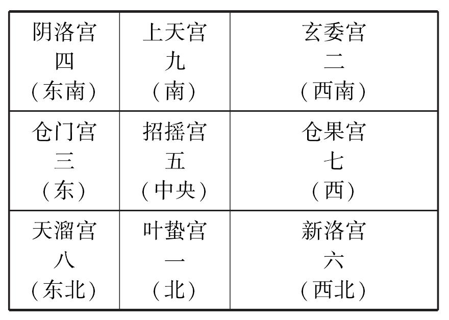 | 释义 | 九宫jiǔ gōng指头中九宫。道教称人脑分九部,即四方四隅和中央。《云笈七籤·黄庭内景经》梁邱子注:“九室谓头中九宫之室及人之九窍。” 九宫 九宫九宫,术数家所说的九个方位。以八卦之官,加上中央宫。宫,此处指方位。 ☚ 万劫 斗府 ☛ 九宫 九宫运用于戏曲、音乐中的一种宫调系统。又称为“五宫四调”。五宫指仙吕宫、南吕宫、中吕宫、黄钟宫、正宫,四调指大石调、双调、商调、越调。通称九宫。清代编的《九宫大成南北词宫谱》录有南北曲所存诸宫调,九宫为常用者,故又称“南北九宫”。 ☚ 旋宫 十三调 ☛ 九宫 九宫南北曲常用曲牌所属的宫调,有仙吕宫、南吕宫、中吕宫、黄钟宫、正宫、大石调、双调、商调、越调等五宫四调,通称为“九宫”或“南北九宫”。元周德清《中原音韵》所附北曲曲牌宫调常用的“九宫”同,另有三调(小石调、商角调、般涉调)为不常用,所属曲牌亦少。明沈璟修订“蒋孝旧谱”的南曲“九宫”亦同;另有“仙吕入双调”,其曲牌原可归入“仙吕”和“双调”(《九宫大成谱》)。“仙吕入双调”为南曲独有,其曲牌可与北曲双调之曲牌联成南北合套,笛色小工调。 ☚ 宫调 十三调 ☛ 九宫jiǔ gōng古乐曲日九个调式,即正宫、中吕、南吕、仙吕、黄钟五个宫和大石调、双调、商调、越调四个调,合称九宫:此曲不比尘世中所填传奇之曲,必有生、旦、净、末之则,又有南北~之限。(五·113) 九宫jiǔ gōng道家以乾、坤、震、巽、离、坎、艮、兑八卦配八方,称八宫,加上中央之宫,合称九宫:法师们俱戴上七星冠,披上~八卦的法衣,踏着登云履,手执牙笏,便拜表请圣。(一○二·1307) 古代名物 > 占相類 > 栻占部 > 占具具件 > 九宫 九宫 jiǔgōng 奇門遁甲術中排布在地盤上九個宫位之合稱,九宫有坎一宫,坤二宫、震三宫、巽四宫、中五宫、乾六宫、兑七宫、艮八宫、離九宫。明·池本理《奇門五總龜》云:“天以九星以鎮九宫,地有九宫以應九洲。其式托以靈龜洛書之數,戴九履一,左三右七,二四爲肩,六八爲足。五居中宫者,土火之子,金之母,所寄理於西南坤位也。坎一白水居正北,坤二黑土居西南,震三碧木居正東,巽四緑木居東南,中五黄土居中宫,乾五白金居西北,兑七赤金居正西,艮八白土居東北,離九紫火居正南。” 九宫jiǔ gōng旧时巫卜业谓以一字做三种拆解。《切口·巫卜》:“九宫: 测字法也,以一字作三种拆讲。” 九宫 九宫南北曲所用宫调。北曲据元·周德清《中原音韵》所载,有十七宫调,然其中道宫、高平调、歇指调、角调、宫调一般不用,因而通常只有十二宫调; 南曲据明代蒋孝、沈璟诸家曲谱所载,有十三宫调; 但戏曲里最常用到的南北曲曲牌,大都属于仙吕宫、南吕宫、中吕宫、黄钟宫、正宫、大石调、双调、商调和越调等九个宫调。通称“九宫”或“南北九宫”。 ☚ 宫调 十三调 ☛ 九宫❶即九窍,出《玄女经》。包括耳二、眼二、鼻孔二、口、前阴、后阴。 九宫❶八卦的“离”位,主南方。《素问·六元正纪大论》:“灾九宫”。即南方部位的灾难、疾病。 九宫道教修炼名词。指头的9个部位,即两眉间上,1寸为明堂宫;2寸为洞房宫 ;3寸为丹田宫;4寸为流珠宫;5寸为玉帝宫;明堂上1寸为天庭宫;洞房上1寸为极真宫;丹田上1寸为玄丹宫;流珠上1寸为太皇宫。 九宫 045 九宫至迟在汉代出现的一种三阶的纵横图。见32043。 ☚ 幻方 孙子问题 ☛ 九宫 九宫戏曲、音乐名词。南北曲所用宫调。北曲据元周德清《中原音韵》等书所载,有北宫调;南曲据明蒋孝、沈璟诸家曲谱所载,有十三宫调。戏曲里实际所常用的南北曲曲牌,大都属于仙吕宫、南吕宫、中吕宫、黄钟宫、正宫、大石调、双调、商调和越调等九个宫调通称 “九宫” 或 “南北九宫”。 ☚ 勾栏 昆曲 ☛ 九宫jiǔɡōnɡ❶古代将八方与中央定位九宫, 见《灵枢·九宫八风》。九宫各有专名和数字(如下表)。金元时针灸家将八脉交会穴配合九宫数, 成为灵龟八法。