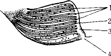 图89 书肺 1.气门 2.肺叶 3.气室 4.血窦