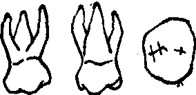 但第二乳磨牙的牙冠较小,颈缘缩小显著,颈嵴较突,牙冠从颈部向颌面内收。 因此, 颌面比牙冠颈部要小得多。上颌第二乳磨牙有三根,下颌第二乳磨牙有两根,但也有三根者(图4、5)。